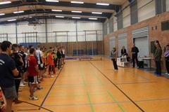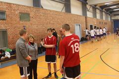 Oberbürgermeisterin Dr. Dietlind Tiemann eröffnete das 9. Landesfinale der Oberstufenzentren. 14 Männermannschaften und 10 Frauenmannschaften aus 17 Oberzentren des Landes hatten sich zum Wettkampf angemeldet. Gastgeber waren, wie bereits in der Vergangenheit, die Oberstufenzentren „Alfred Flakowski„ und “Gebrüder Reichstein“.