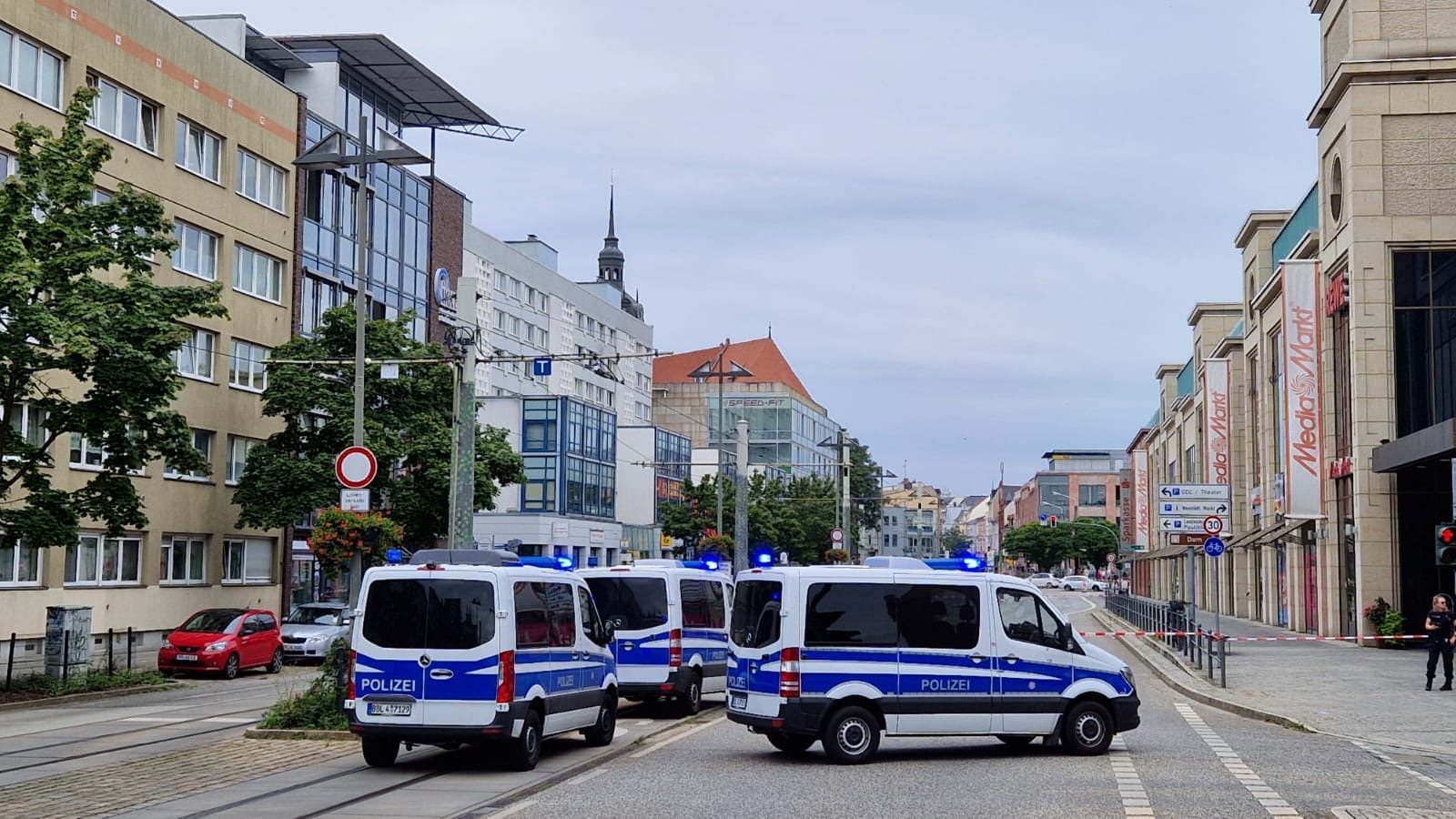 Oberbürgermeister Steffen Scheller und der Beigeordnete Thomas Barz sind vor Ort. Steffen Scheller hat die Berufsfeuerwehr gebeten, im benachbarten Paulikloster ein Notquartier einzurichten und die betroffenen Menschen zu versorgen. Des Weiteren stand er mit den Verkehrsbetrieben im Austausch, um einen Umleitungsverkehr einzurichten. Mit den Stadtwerken erörterte der Oberbürgermeister eine vorübergehende Abschaltung der Medien, wenn es zur Entschärfung kommt. Vor Ort spricht er gerade mit den betroffenen Menschen.