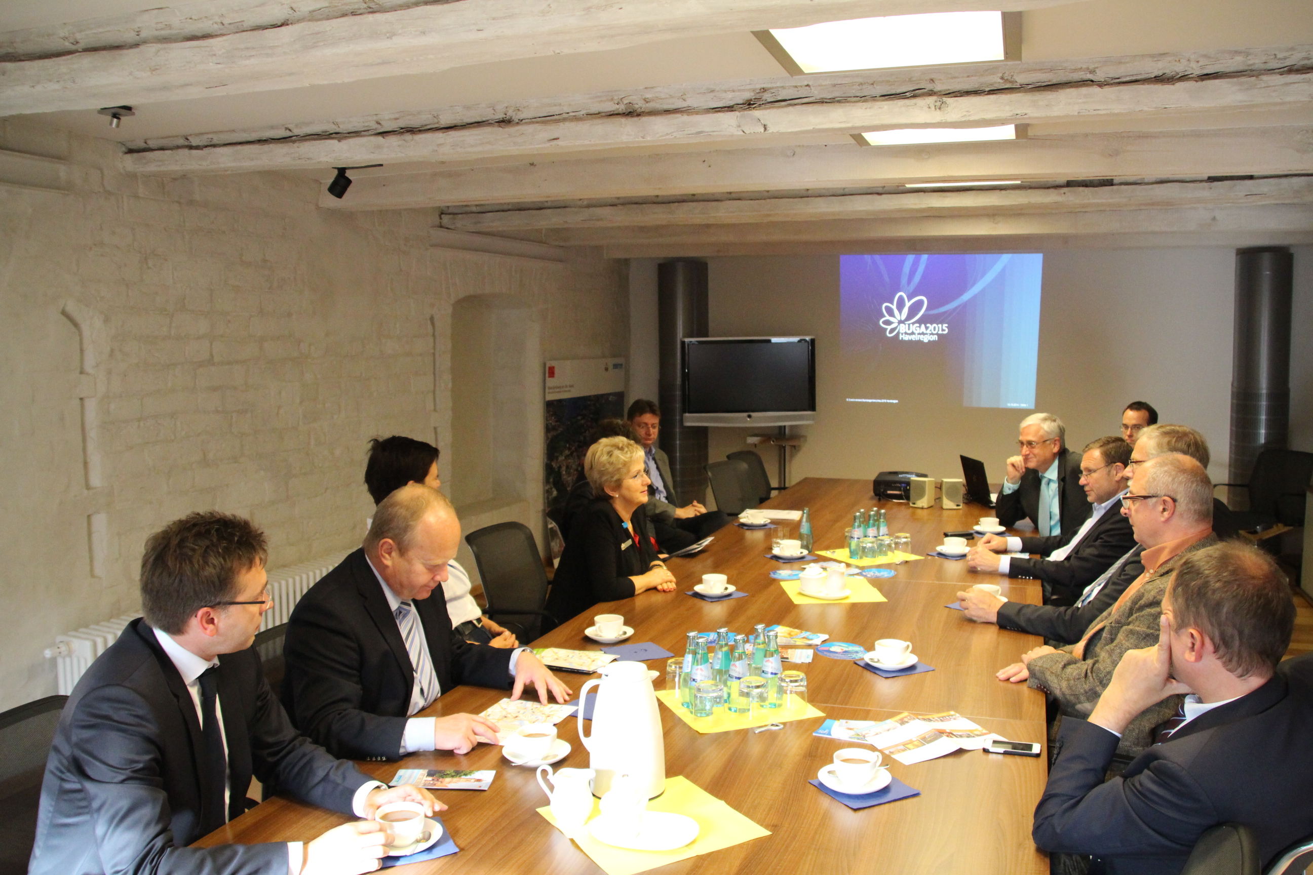 Am Montag, 13.10.2014, begrüßte Oberbürgermeisterin Dr. Dietlind Tiemann den Staatsminister von Sachsen-Anhalt und Chef der Staatskanzlei Rainer Robra sowie weitere acht Staatssekretäre im Altstädtischen Rathaus und berichtete über den Stand der Vorbereitungen zur BUGA 2015 in Brandenburg an der Havel. Anschließend konnte Stadtentwicklungsbeigeordneter Michael Brandt im Rahmen einer Baustellenführung über das BUGA-Gelände die Gäste von der bevorstehenden Bundesgartenschau begeistern.