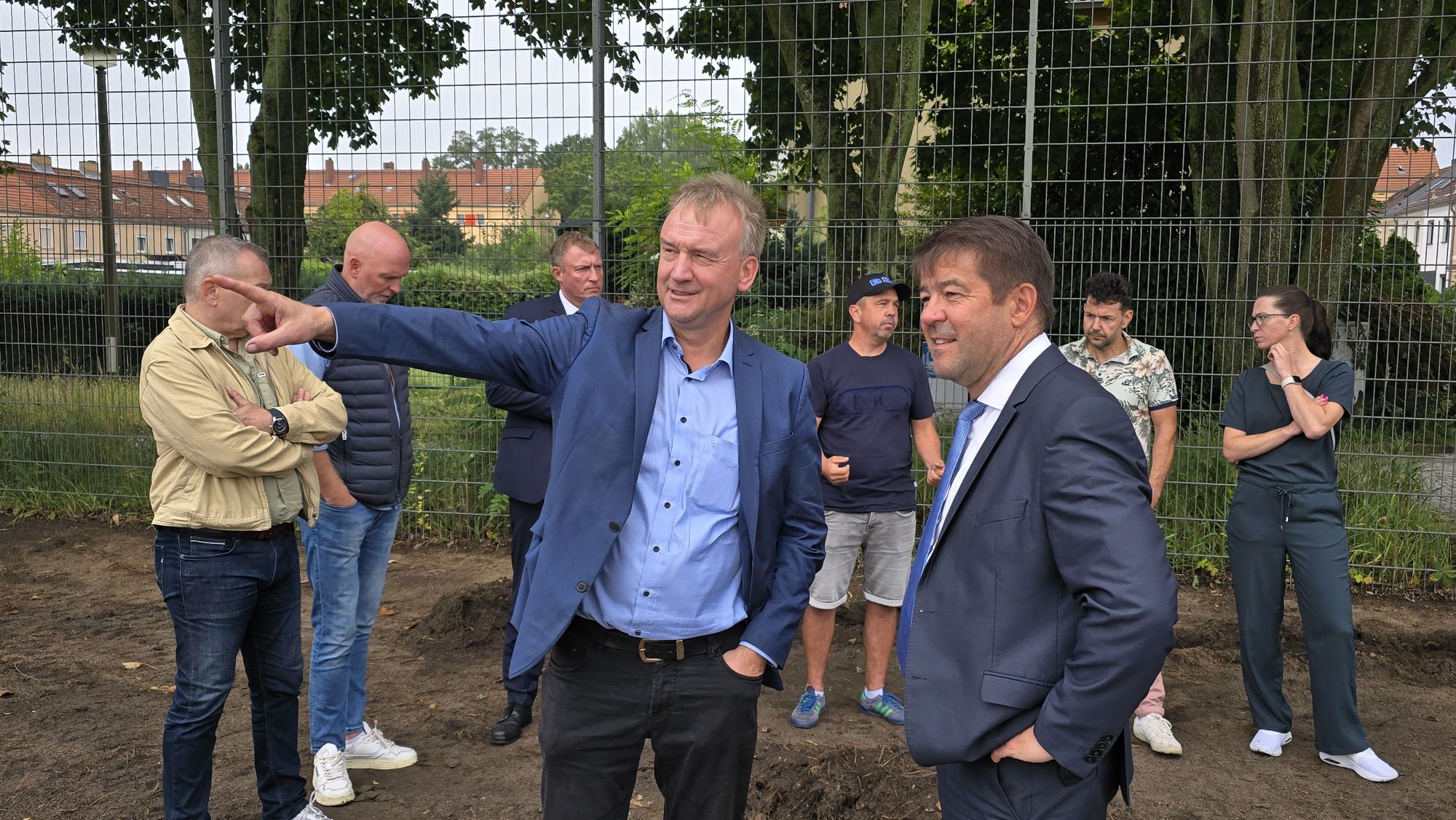 Der Wunsch-Zeitplan war ambitioniert, als vor neun Monaten beim ersten Spatenstich für den neuen Kunstrasenplatz die Fertigstellung für den Sommer 2025 vorhergesagt wurde. Beim Baustellenbesuch von Oberbürgermeister Steffen Scheller am heutigen Freitagvormittag räumt Friedhelm Ostendorf, Vorstandsvorsitzender des BSG Stahl Brandenburg e.V., ein: