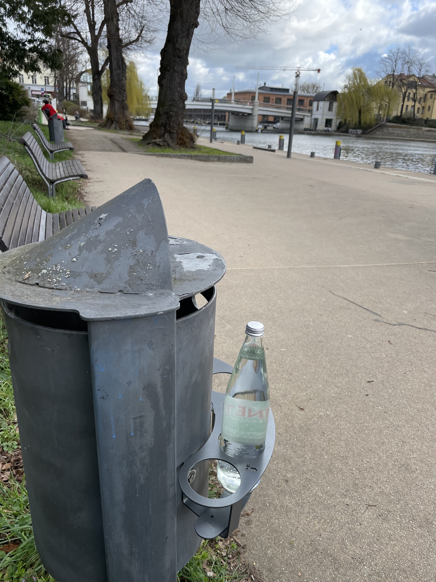Die Pfandringe bieten die Möglichkeit, Pfandflaschen einfach und sichtbar abzustellen, sodass Wertstoffe dem Recycling zurückgeführt werden können und nicht im Restmüll landen. Sammlerinnen und Sammler können außerdem Pfandflaschen mitnehmen und einlösen, ohne in die Abfallbehälter greifen zu müssen.