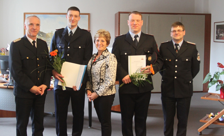 Zum 01.03.2014 ernannte Oberbürgermeisterin Dr. Dietlind Tiemann zwei Stadtbrandmeisteranwärter. Sie beginnen heute mit der einjährigen Laufbahnausbildung im mittleren feuerwehrtechnischen Dienst an der Landesschule und Technischen Einrichtung für Brand- und Katastrophenschutz in Eisenhüttenstadt.