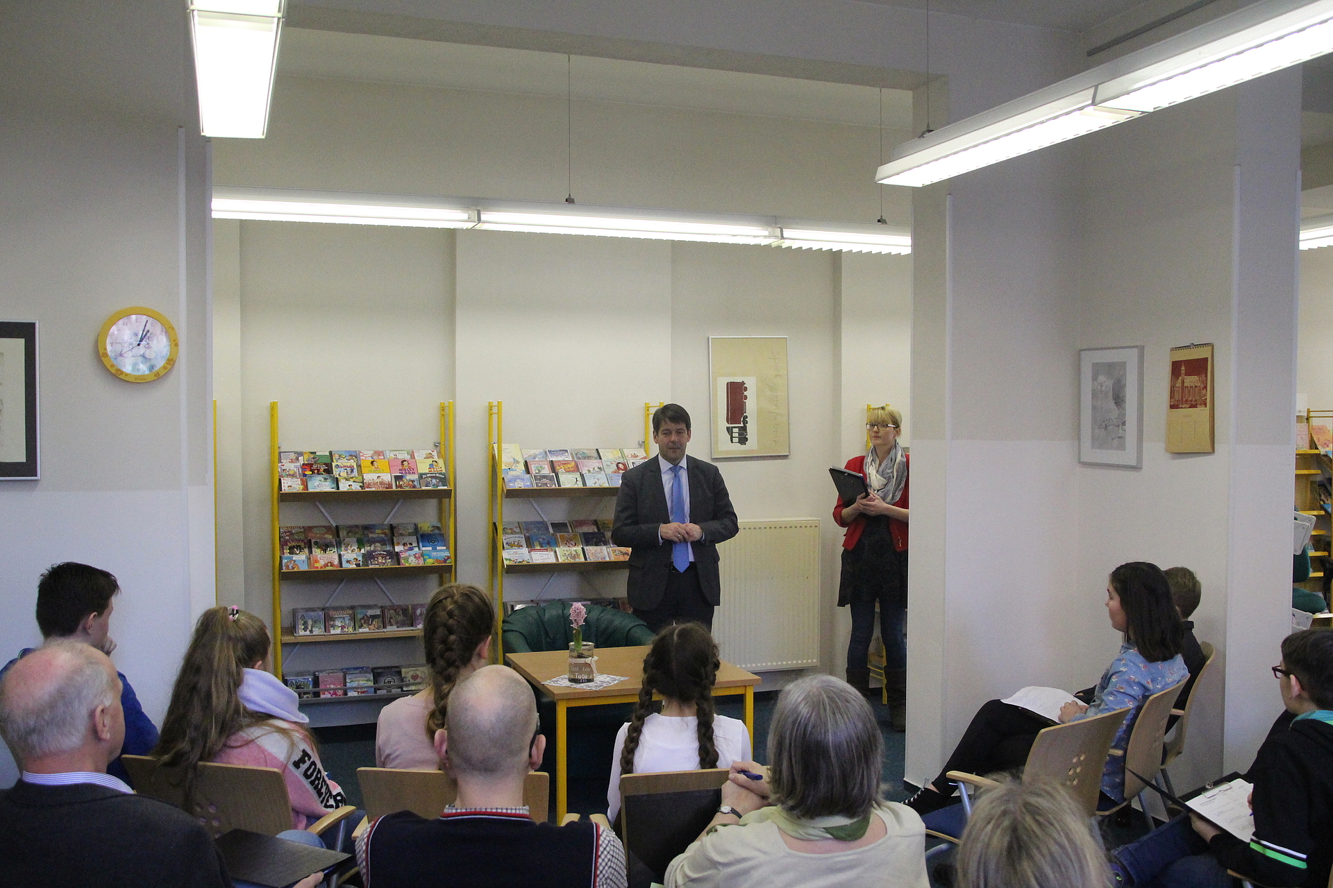 Heute fand der diesjährige Stadtentscheid für den 59. Vorlesewettbewerb des deutschen Buchhandels 2017/2018 in der Fouqué-Bibliothek statt. Zu den Zuhörern gehörte auch Bürgermeister Steffen Scheller.