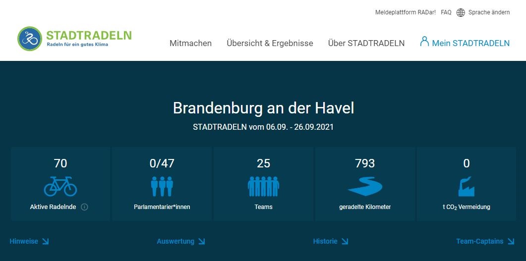 Ab heute (06.09.2021) ist es wieder soweit! Bereits zum dritten Mal findet die Aktion STADTRADELN statt und die Stadt Brandenburg an der Havel ist Teil davon.