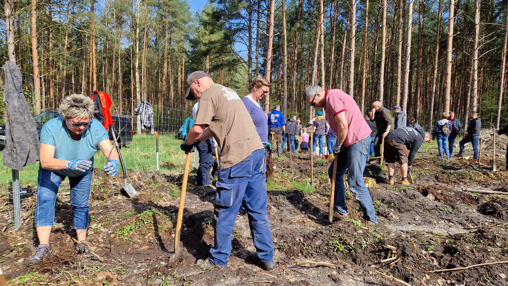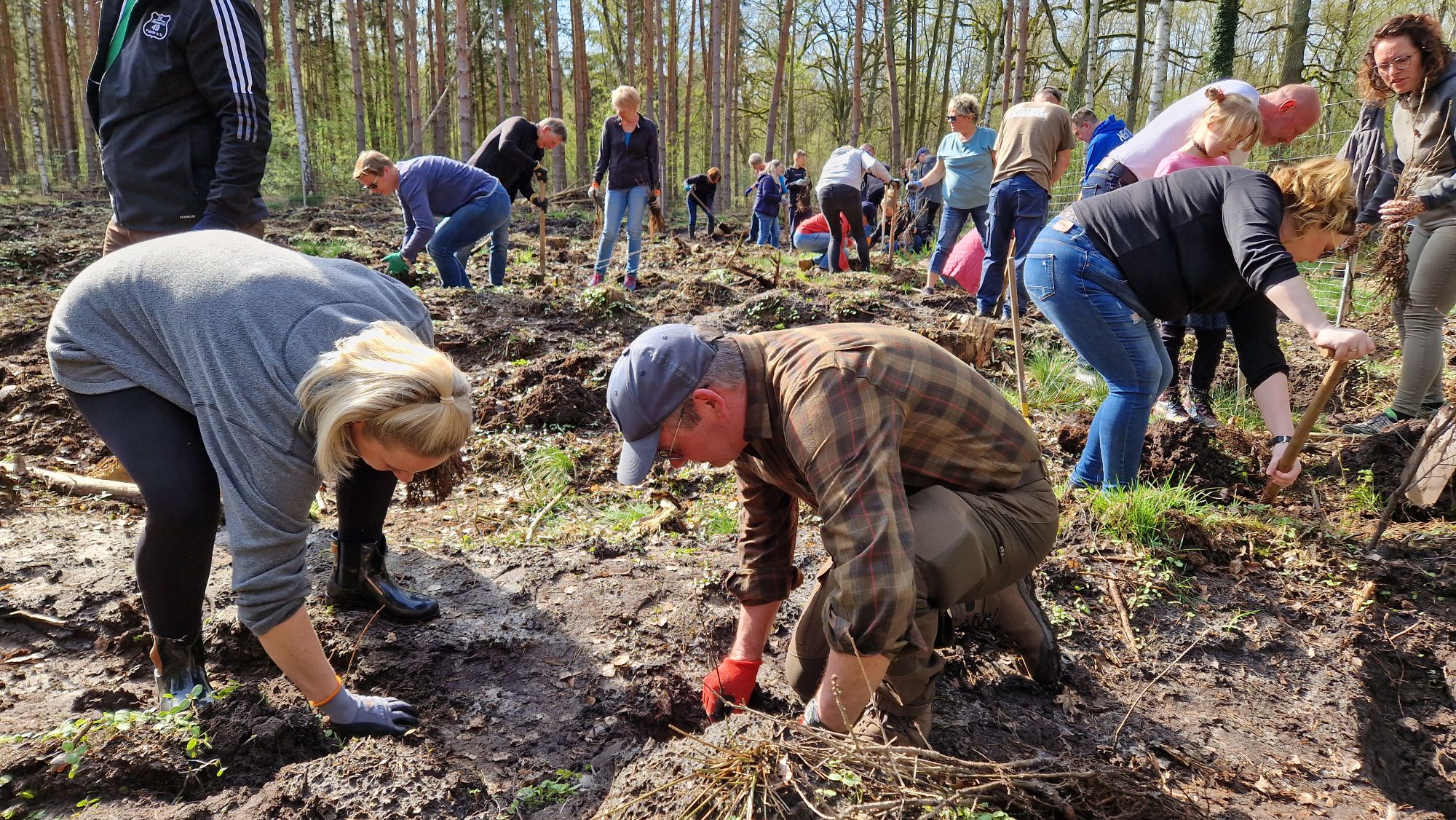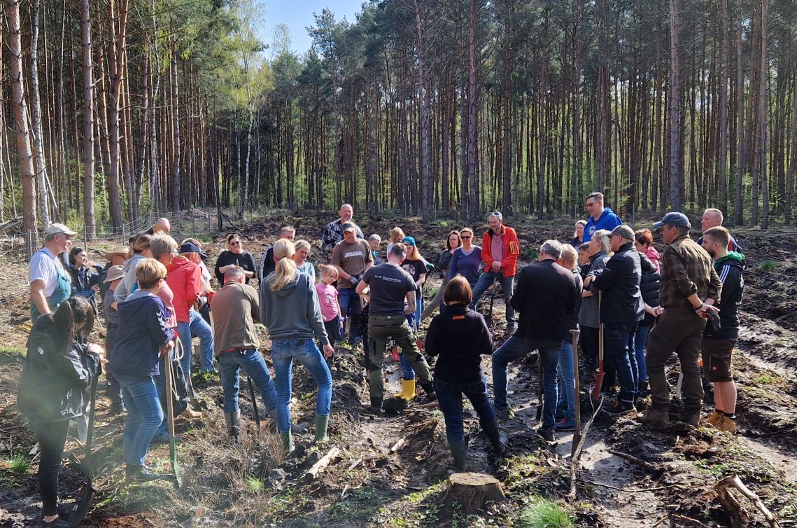 Einen tollen Beitrag für den Klimaschutz in ihrem Geschäftsgebiet hat die Brandenburger Bank am ersten April-Wochenende geleistet. Im Bohnenländer Wald forsteten viele Mitarbeitende samt Familienangehörige eine abgestorbene Fichtenfläche auf. Die Fichten hatten als flach wurzelnde Baumart den letzten heißen Sommern nichts mehr entgegenzusetzen, weswegen die Fläche nun für den Waldumbau zur Verfügung stand. Klimabeständige Mischwälder sollen auch den Brandenburger Stadtforst zukunftsfähig machen, wofür Sponsoren und Pflanzpartner gern gesehen sind. Die Brandenburger Bank hatte 3.000 Euro für neue Setzlinge spendiert und brachte 2.400 Eichen, Linden und Tannen im Rahmen eines Teamtages eigenhändig in den Waldboden.