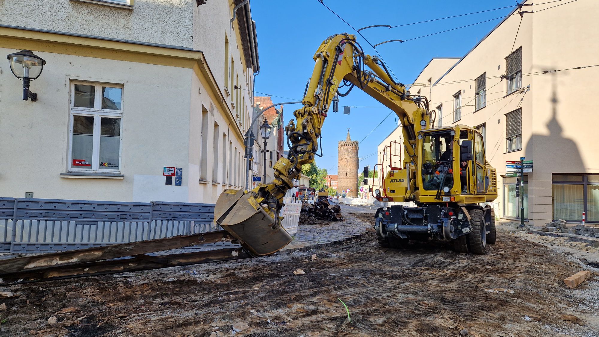 Eine Unbekannte gibt es auf diesem Weg: Die Verlegung der beiden DN125-Leitungen für den Vor- und Rücklauf des Fernwärmesystems kreuzt nördlich des Plauer Torturmes die unterirdischen Reste der Stadtmauer. Weil sich dem begleitenden Archäologen-Team ein spannendes Suchfeld offenbaren könnte, erfolgt die eigentlich für August geplante Ausschachtung zeitnah, sodass ein Bauverzug nahezu ausgeschlossen werden kann.