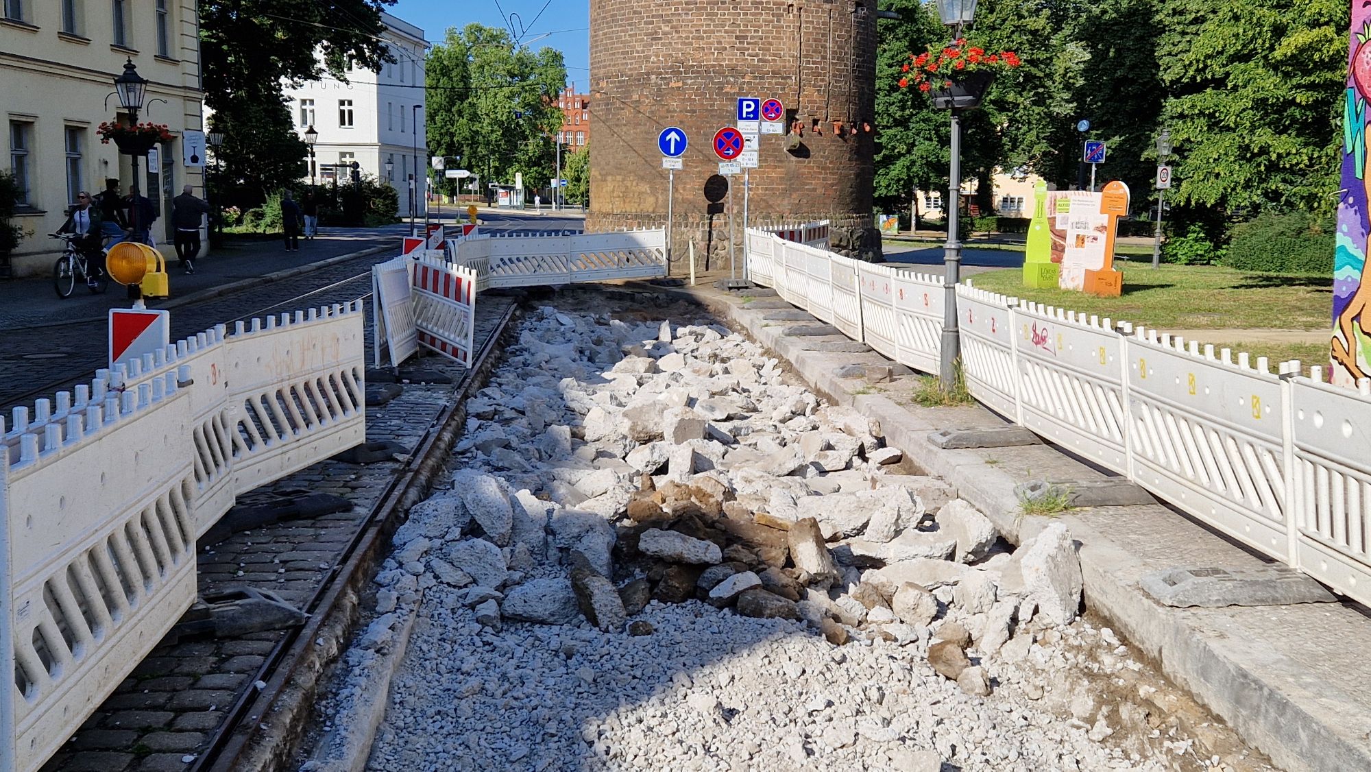 „Es ist offensichtlich, dass alle Beteiligten bestrebt sind, die Zeit der Vollsperrung so kurz wie möglich zu halten. Wenn der erste Bauabschnitt geschafft ist, also die Gleisbögen verlegt sind und die Straße gepflastert ist, wird sie wieder einseitig nutzbar und die Straßenbahn kann auf einem Ring fahren – und zwar in Richtung Hauptstraße,“