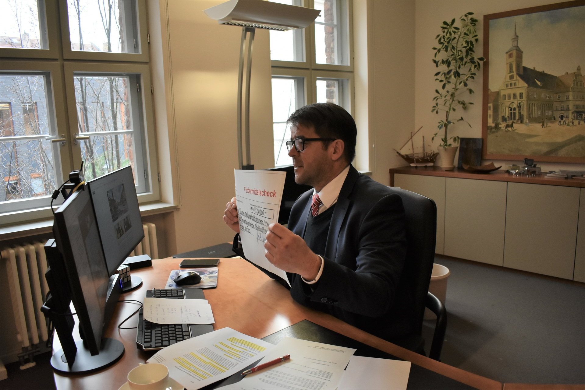 Im Rahmen einer Online-Pressekonferenz übergab Brandenburgs Minister für Infrastruktur und Landesplanung Guido Beermann am Mittwoch, dem 18. Januar 2023, virtuell den letzten Scheck der Städtebaufördermittel für 2022 in Höhe von 4.280.000 Euro an Oberbürgermeister Steffen Scheller.