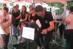 Der Vorplatz des Altstädtischen Rathauses war heute, 8. Juni 2011, Austragungsort des DAK-Städtewettkampfes 2011. Insgesamt treten 19. Städte im Land Brandenburg gegeneinander an. Die Stadt Brandenburg an der Havel ging als 13. Stadt an den Start. Bei diesem Wettkampf kämpfen die teilnehmenden Städte um jeden Kilometer. Im Vordergrund steht der Spaß an der Bewegung. Die Spielregeln sind einfach, jede Stadt tritt mit 60 Teilnehmern an, die jeweils 3 Minuten Zeit haben, um so viele Kilometer wie möglich zu erradeln.