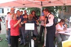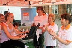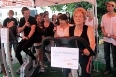 Oberbürgermeisterin Dr. Dietlind Tiemann eröffnete die „Fahrradtour“ und trat als Erste in die Pedale. Es galt, die Marke von 146,3 km vom letzten Jahr zu schlagen.