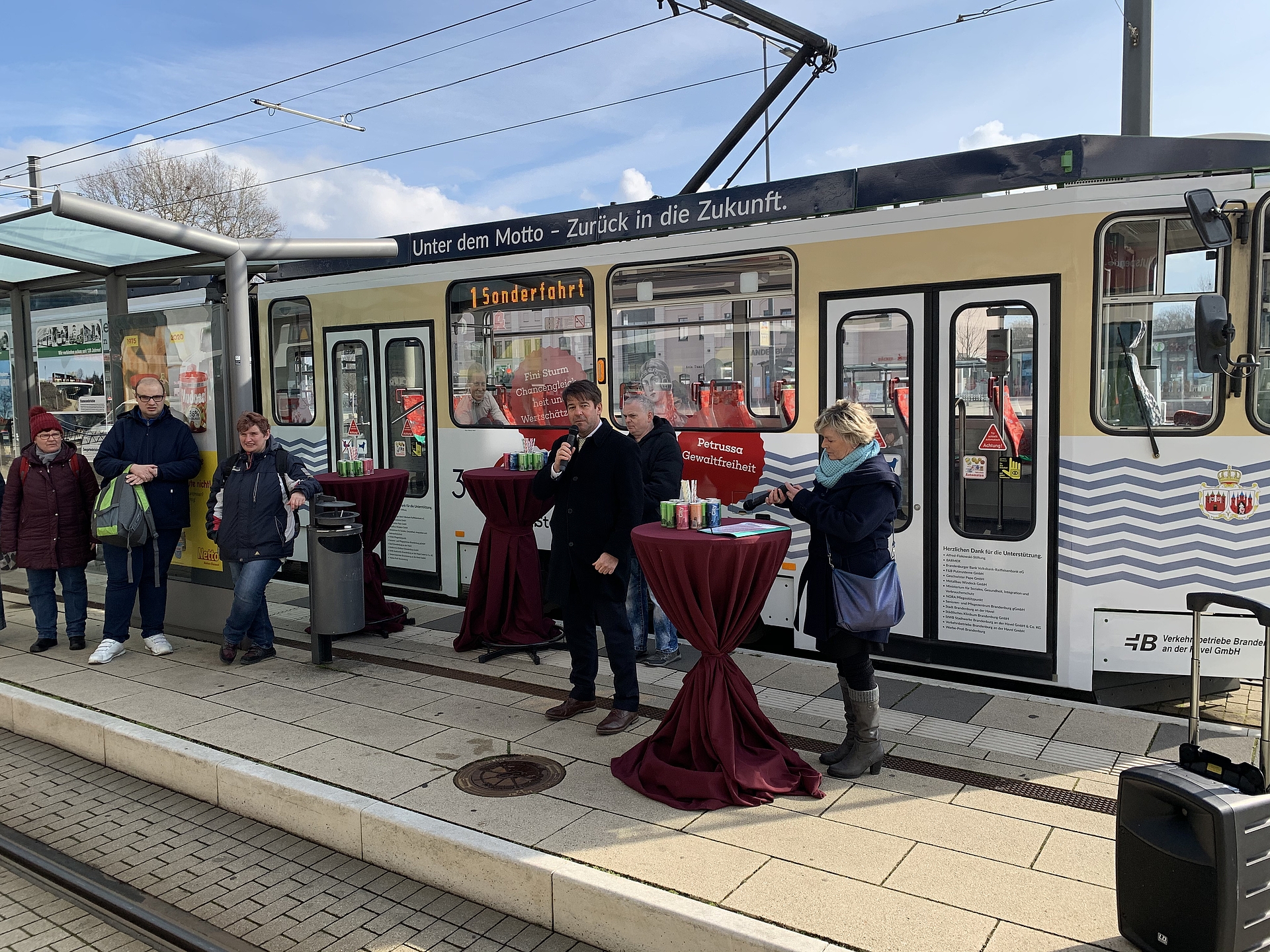 Am Donnerstag, dem 27. Februar 2020, ist eine eigens für die 30. Brandenburgischen Frauenwoche gestaltete Straßenbahn in ihren Dienst in der Havelstadt gestartet. Gemeinsam mit vielen Vertreterinnen und Vertretern der Stadt aus Vereinen, Verbänden, Institutionen, Unternehmen sowie mit Bürgerinnen und Bürgern gaben Oberbürgermeister Steffen Scheller und Kornelia Köppe, Gleichstellungsbeauftragte der Stadt, den Startschuss zur planmäßigen Abfahrt um 13:25 Uhr; am Steuer die Straßenbahnfahrerin Frau Sabine Petzold.
