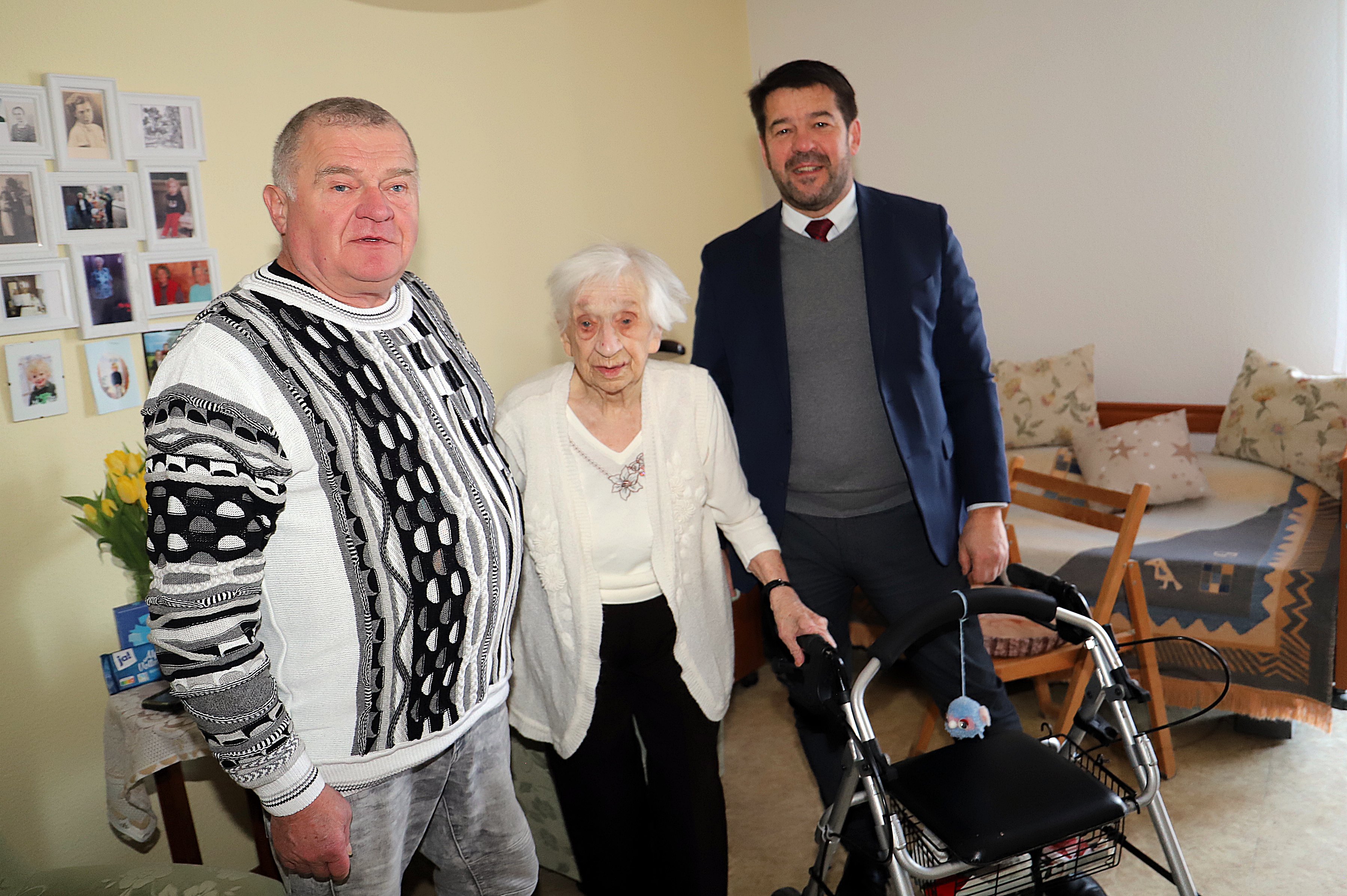 Oberbürgermeister Steffen Scheller gratulierte am 4. Januar im AWO-Seniorenheim „Am Wasserturm“ in Kirchmöser Meta Altenkrüger zum 105. Geburtstag und wünschte ihr vor allem Gesundheit.