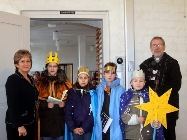 Am Dienstag, 04.01.2011, erhielt Oberbürgermeisterin Dr. Dietlind Tiemann im Altstädtischen Rathaus besuch von den Sternsingern. Gemeinsam mit zahlreichen Mitarbeiterinnen und Mitarbeitern lauschte sie den Liedern, die „Caspar“ (Filipe Delino Maia da Costa), „Melchior“ (Amelie Eggebrecht), „Balthasar“ (Klara Struppek) und der „Sternträger“ (Roman Retsch) gemeinsam mit Pfarrer Matthias Brühe von der katholischen Kirchengemeinde Hl. Dreifaltigkeit vortrugen. Zum Abschluss brachten die Heiligen Drei Könige am Türrahmen zum Bürobereich der Oberbürgermeisterin die traditionelle Segensbitte 20*C+M+B+11 an und baten um eine Spende.