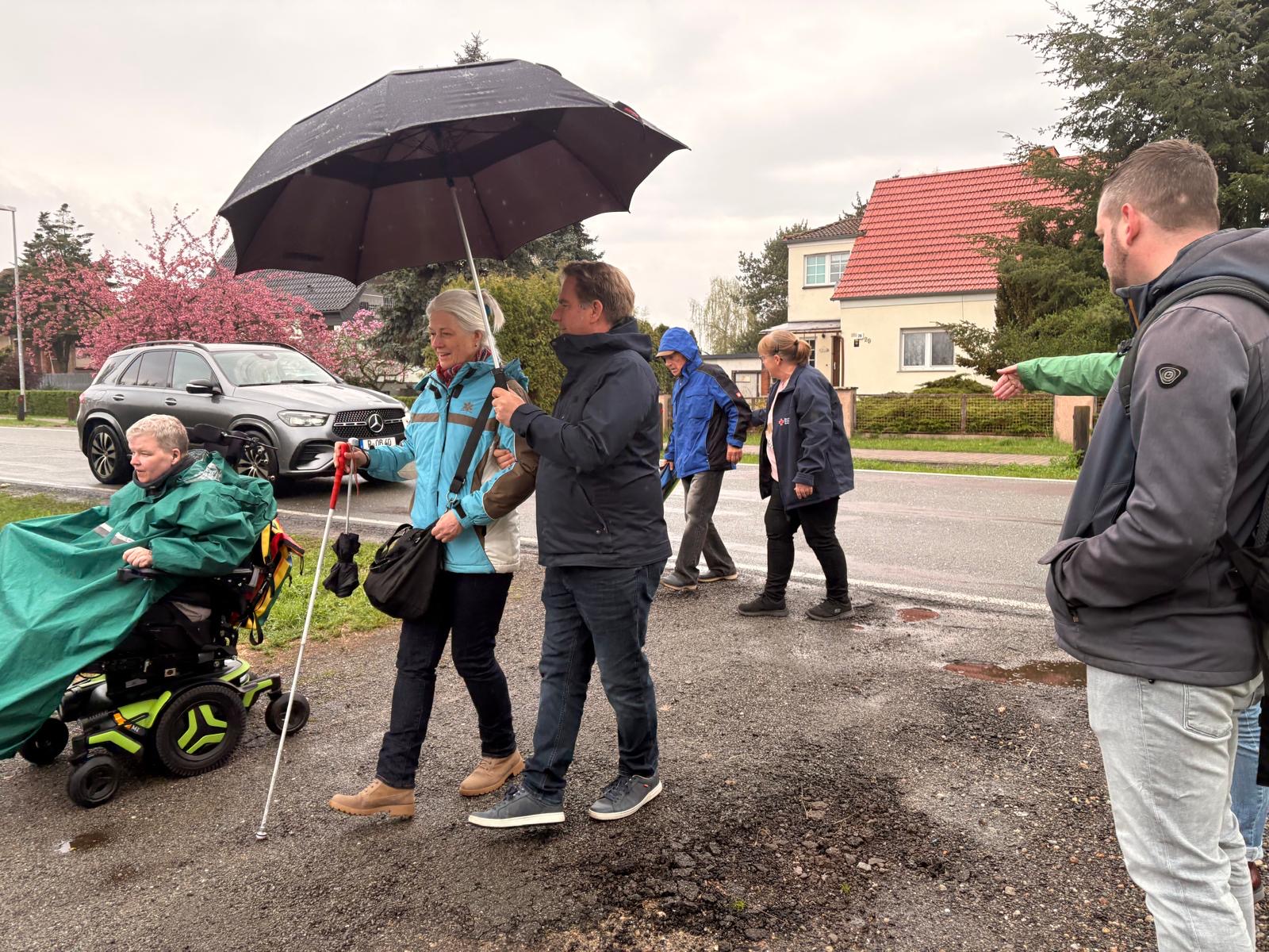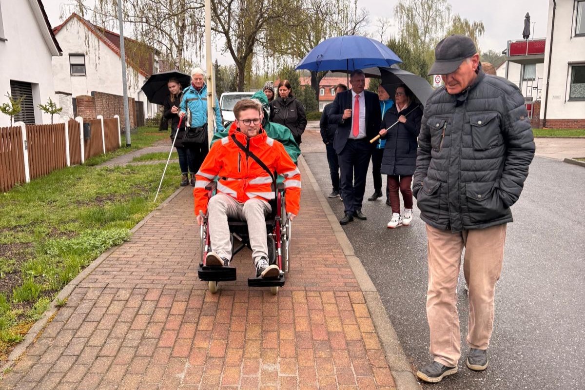 Organisiert wurde der Rundgang von der Behindertenbeauftragten Katrin Tietz und dem „Beirat für Menschen mit Behinderungen“. Ziel: Probleme sichtbar machen, die viele sonst übersehen. Rollstuhl und Blindenstock konnten vor Ort getestet werden.
