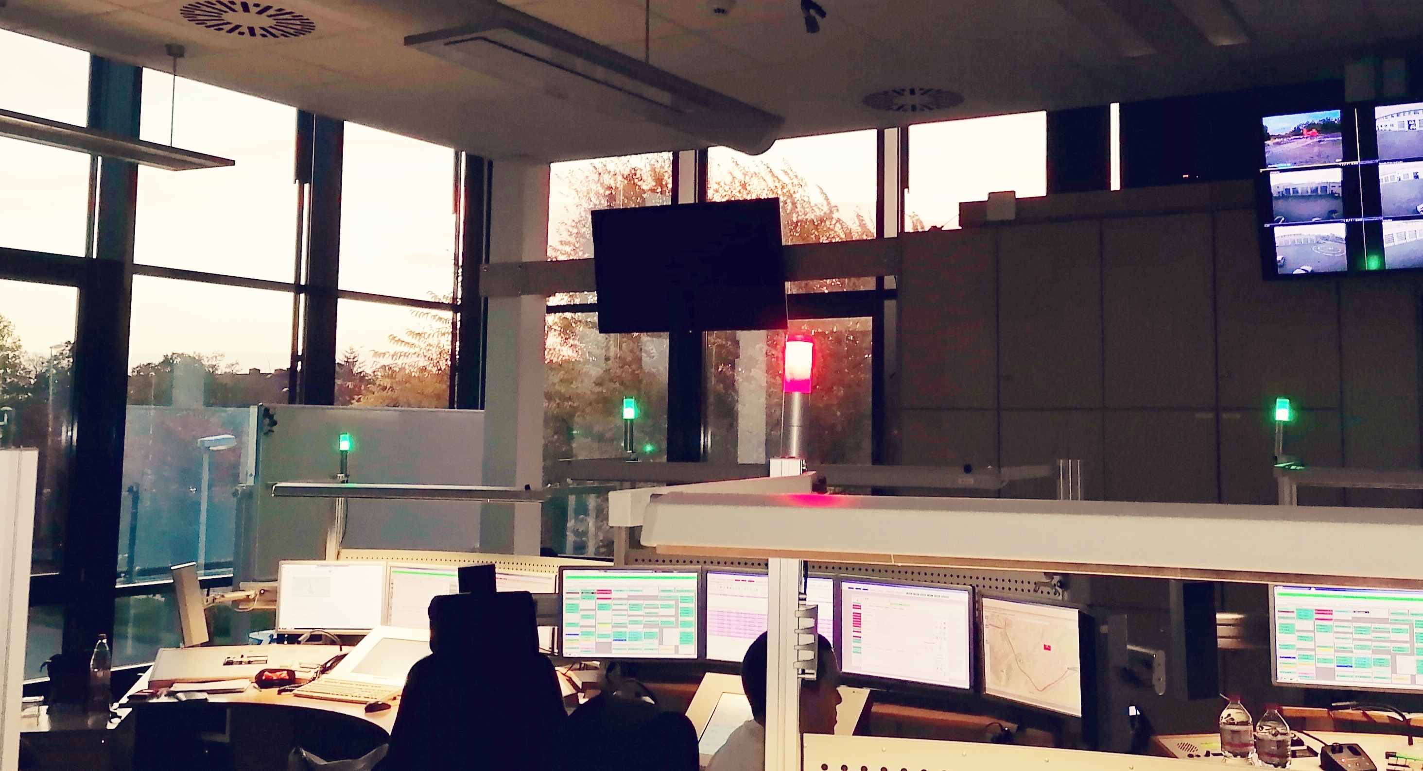 An den Arbeitsplätzen leuchten sogenannte Platzbelegtanzeigen, die bei einem Notruf rot und bei freier Leitung grün sind. So erkennt der/die Schichtleiter/in die Auslastung der Kollegen und kann eingreifen. Die Platzlampen waren gestern fast durchgängig rot.