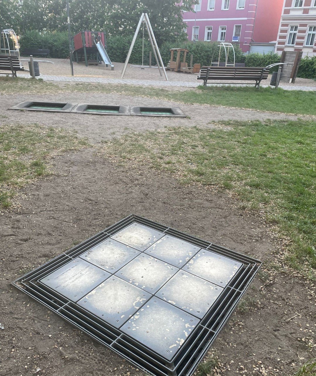 Der Spielplatz am Trauerberg, unter den Kleinen von uns wegen dem Tanzglockenspiel auch „Klingklangspielplatz“ genannt, ist ein beliebter Treffpunkt für Kinder und Eltern. Um generell die Attraktivität der Spielplätze zu erhalten und zu verbessern, ist die Stadt stets bemüht defekte Spielgeräte wiederherzustellen.
