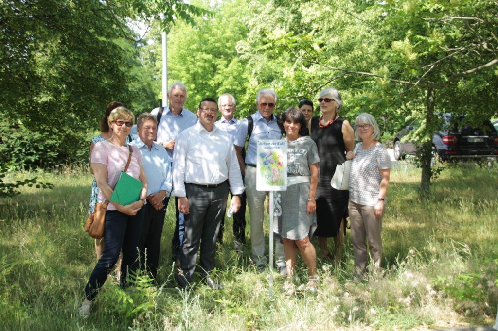 Nach kurzen Grußworten von Monika Schilling für den NABU und des Geschäftsführers der TGZ GmbH, Hans-Joachim Freund, wurden zwei von der beauftragten Firma GGS Brandenburg/Havel GmbH gesponserte Hinweisschilder „Artenvielfalt erwünscht“ aufgestellt, um allen Interessierten die Bedeutung des Projektes nahe zu bringen.