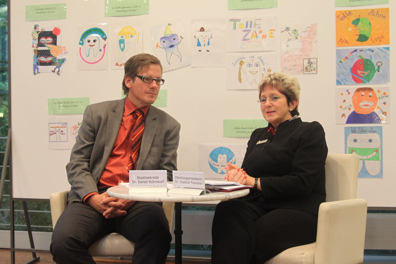 „Die Stadt Brandenburg an der Havel ist gern Gastgeber für diese Landesveranstaltung, denn wichtige Impulse für präventive Betreuungskonzepte zur Verbesserung der Mundgesundheit sind von hier ausgegangen. Es ist ein großer Erfolg heute sagen zu können, dass es in unserer Stadt gelungen ist, die vom Land gesteckten Ziele zu erreichen. Dass darüber hinaus das Logo und Erkennungszeichen für die Brandenburger Gruppenprophylaxe eine Schülerin aus der Havelstadt entworfen hat, ist für mich eine besondere Freude“ sagte Oberbürgermeisterin Dr. Dietlind Tiemann.