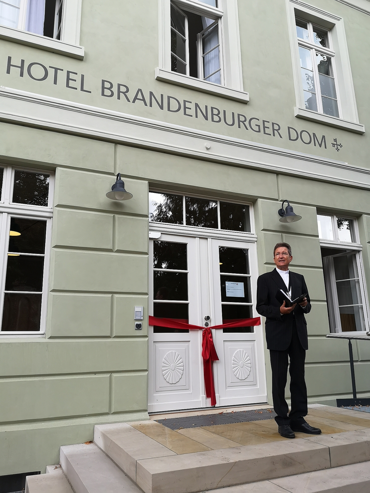 Am Tourismusstandort Brandenburg an der Havel öffnete am heutigen Dienstag, dem 18. August 2020, das neue „Hotel Brandenburger Dom“ seine Türen. In seinem Grußwort zur feierlichen Eröffnung lobte Oberbürgermeister Steffen Scheller die gute Zusammenarbeit aller Beteiligten. Neben den Gastgebern Manuel Asmus, Geschäftsführer Domstift Brandenburg, und Tim Rössle, Geschäftsführer Besondere Orte Umweltforum Berlin GmbH, nahmen auch Domkurator Cord Georg Hasselmann und Wolfgang Huber, Domdechant und Ehrenbürger der Havelstadt, teil. Die Brandenburger Symphoniker umrandeten das Programm.