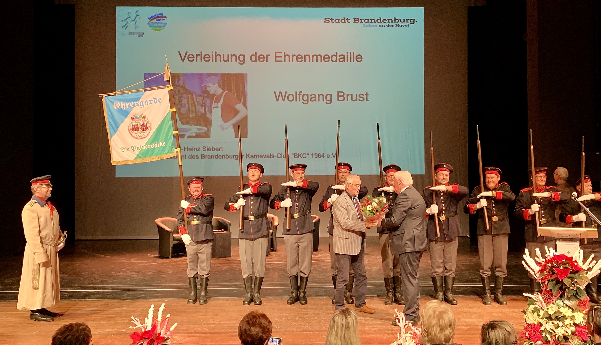- Wolfgang Brust ist seit 1972 eines der aktivsten Mitglieder des Brandenburger Karnevals-Club „BKC" 1964 e.V. Er hat in verschiedenen Positionen und Funktionen durch sein Engagement dazu beigetragen, diesen Verein zu stärken und ihn über die Stadtgrenzen hinaus zu einer anerkannten kulturellen Größe des Landes Brandenburg werden zu lassen.
