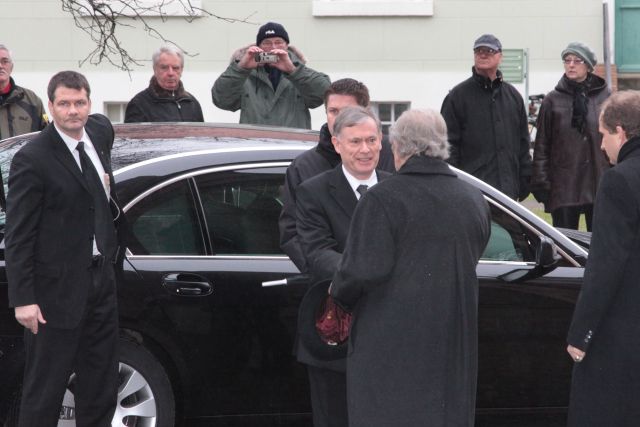 Familienmitglieder und zahlreiche Ehrengäste nehmen in Brandenburg an der Havel Abschied von Otto Graf Lambsdorff. Oberbürgermeisterin erinnert an die Verdienste des Verstorbenen, der ein großer Freund der Stadt und engagierter Förderer des Brandenburger Doms war.