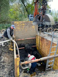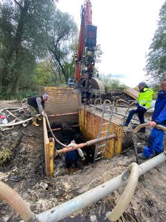 Seit Dienstagabend, den 6.10.2020 haben eine Vielzahl von Firmen und Organisatoren an der Behebung der Havarie mitgewirkt, teilweise in 24-Stunden Schichten.