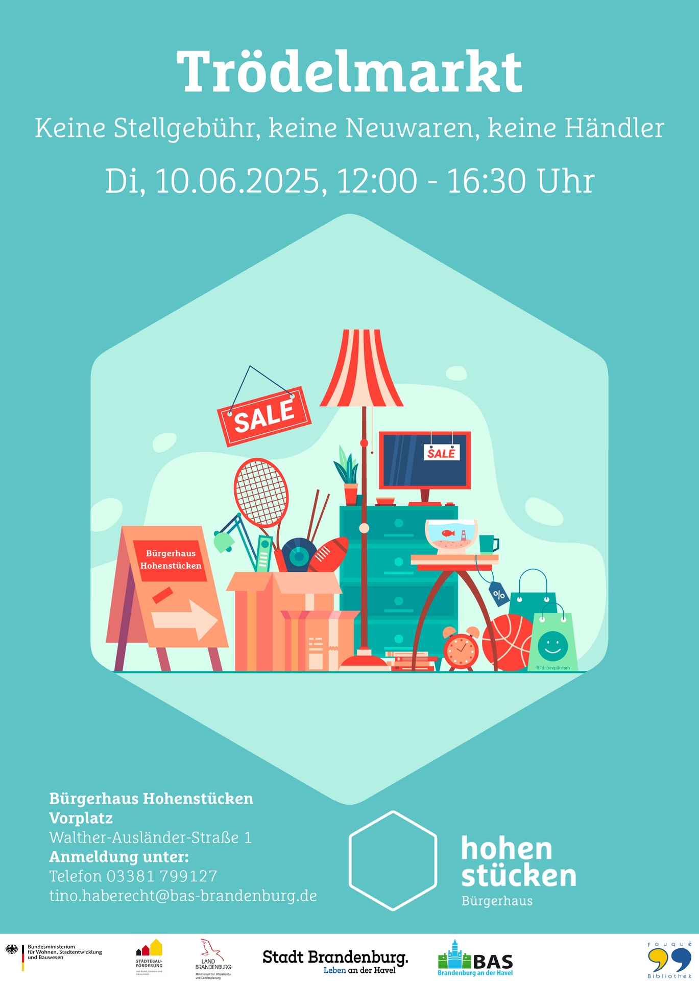 Am 10. Juni 2025 kann in der Zeit von 12:00 bis 16:00 Uhr auf dem Vorplatz des Bürgerhauses in der Walther-Ausländer-Straße 1 getrödelt werden.