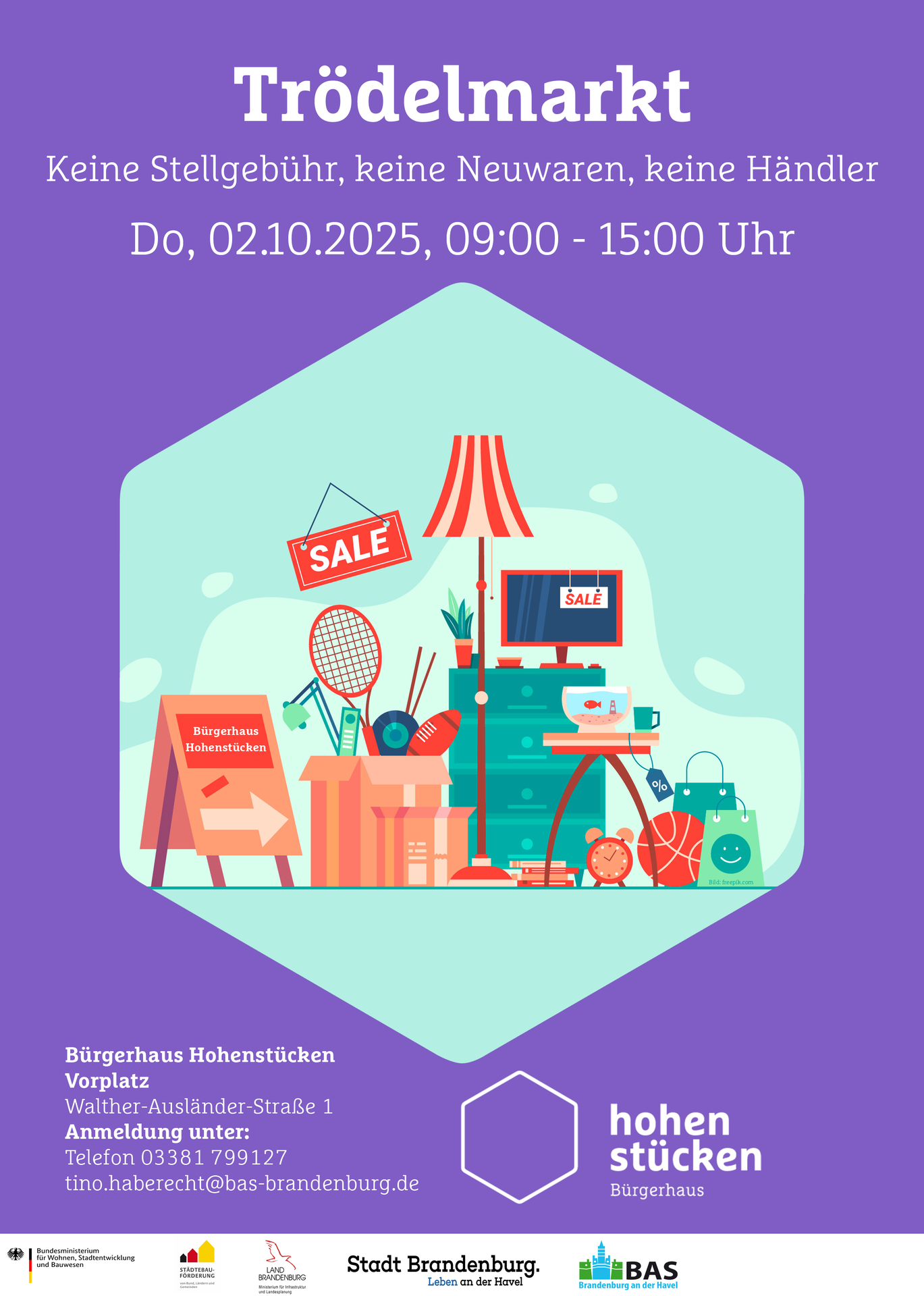 Am 2. Oktober 2025 kann in der Zeit von 09:00 bis 15:00 Uhr auf dem Vorplatz des Bürgerhauses in der Walther-Ausländer-Straße 1 getrödelt werden – ausgenommen Neuware und Händler.