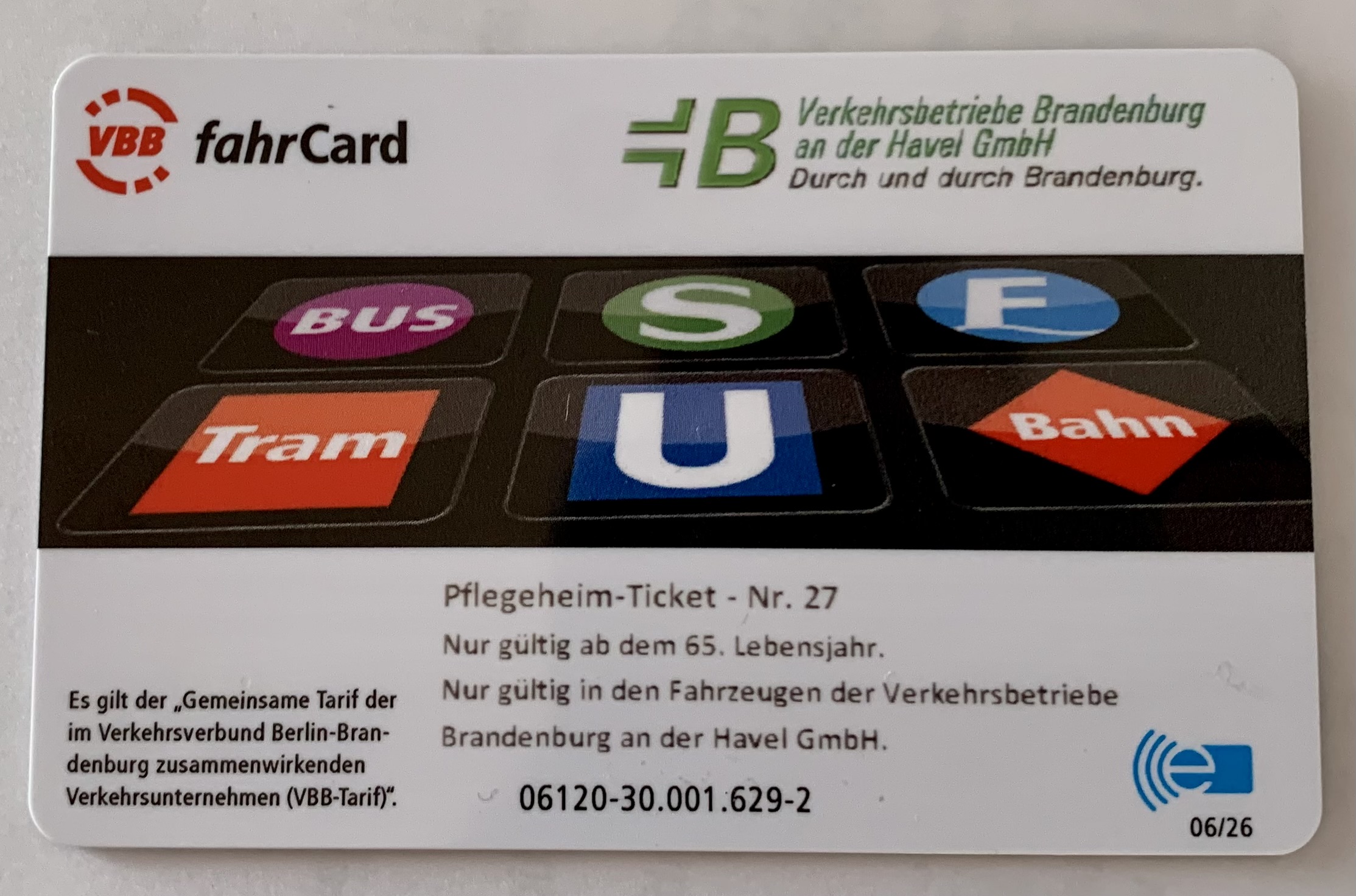 „Die Bereitstellung der Tickets ist wichtig, um den Bewohnerinnen und Bewohnern von Pflegeeinrichtungen ein Stück mehr Mobilität zu ermöglichen. Zudem sind die Jahreskarten nicht personengebunden und können flexibel von allen Pflegebedürftigen ab 65 Jahren genutzt werden. Gemeinsam mit den VBBr investiert die Stadt Brandenburg an der Havel zudem kontinuerlich in den Ausbau der Barrierefreiheit der Haltestellen im Bereich des öffentlichen Nahverkehrs, um auch hier gute Voraussetzungen für ältere Menschen mit Beeinträchtigungen zu schaffen.“