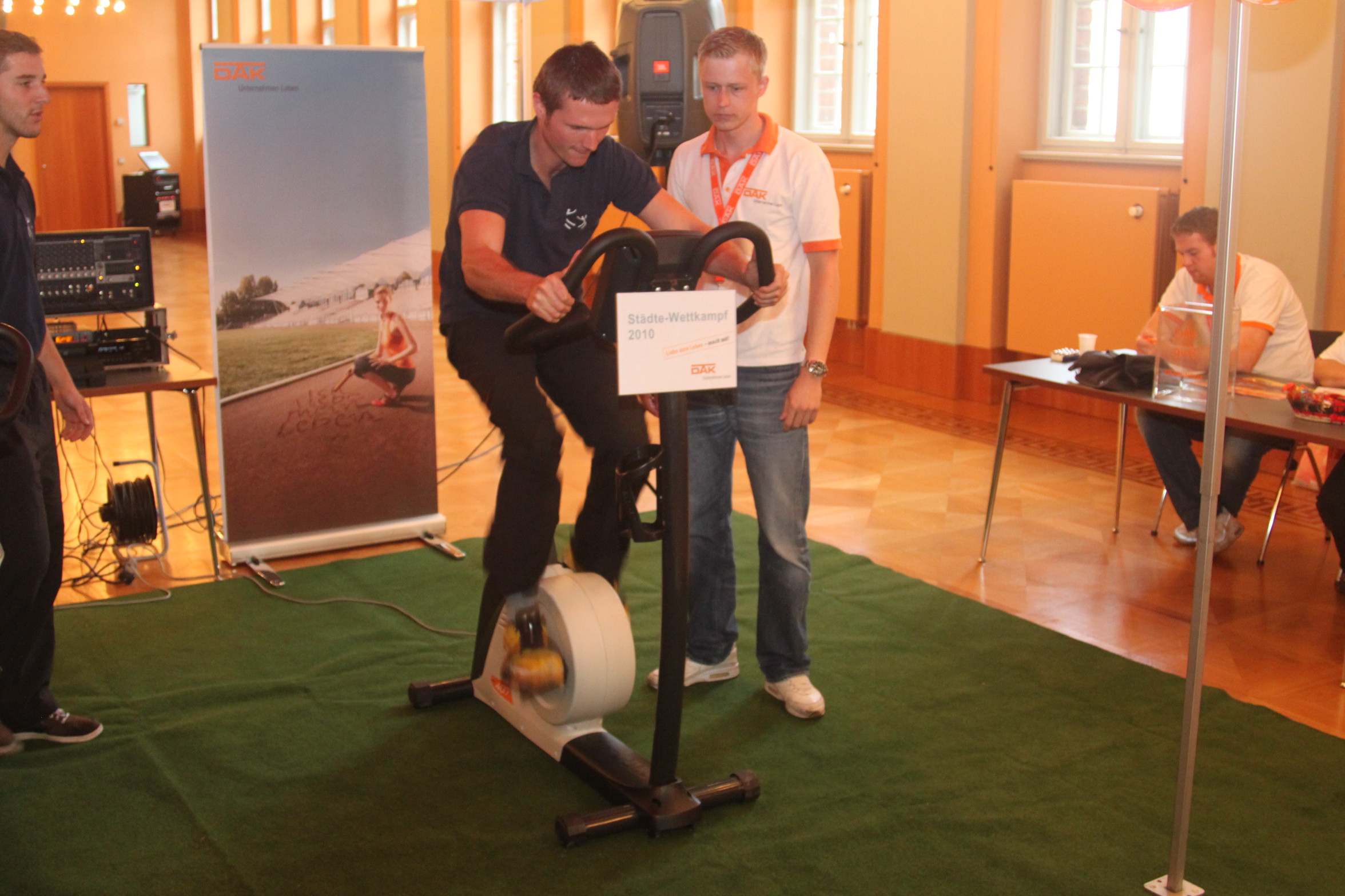 Im Rahmen des DAK-Städtewettkampfs begab man sich am 14. September 2010 im Rolandsaal des Altstädtischen Rathauses in Brandenburg an der Havel auf eine ganz besondere Fahrradtour. Bei diesem Wettkampf kämpfen die teilnehmenden Städte um jeden Kilometer. Die Spielregeln sind einfach, jede Stadt tritt mit 60 Teilnehmern an, die jeweils 3 Minuten Zeit haben, um so viele Kilometer wie möglich zu erradeln.