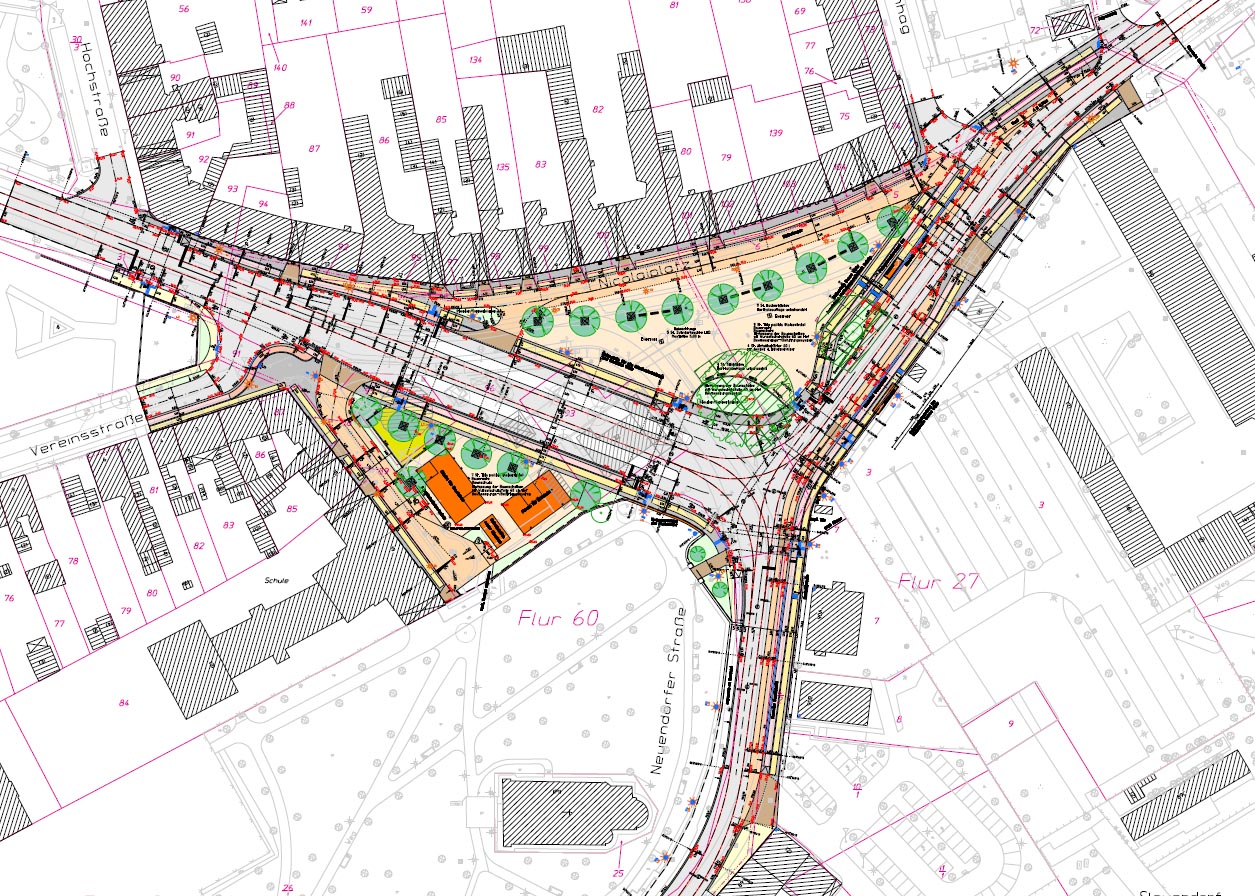 - Zusammenfassung der derzeit bestehende drei Teilknoten zu einem einzigen Knotenpunkt im südlichen Platzbereich