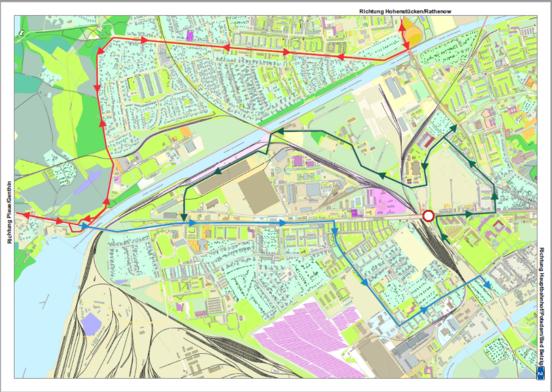 - Aus Richtung Hohenstücken/Rathenow kommend in Richtung Plaue/Genthin wird der Verkehr über die Gördenallee und den Quenzweg zur Plauer Landstraße geleitet. In umgekehrter Richtung gilt die gleiche Umleitung.
