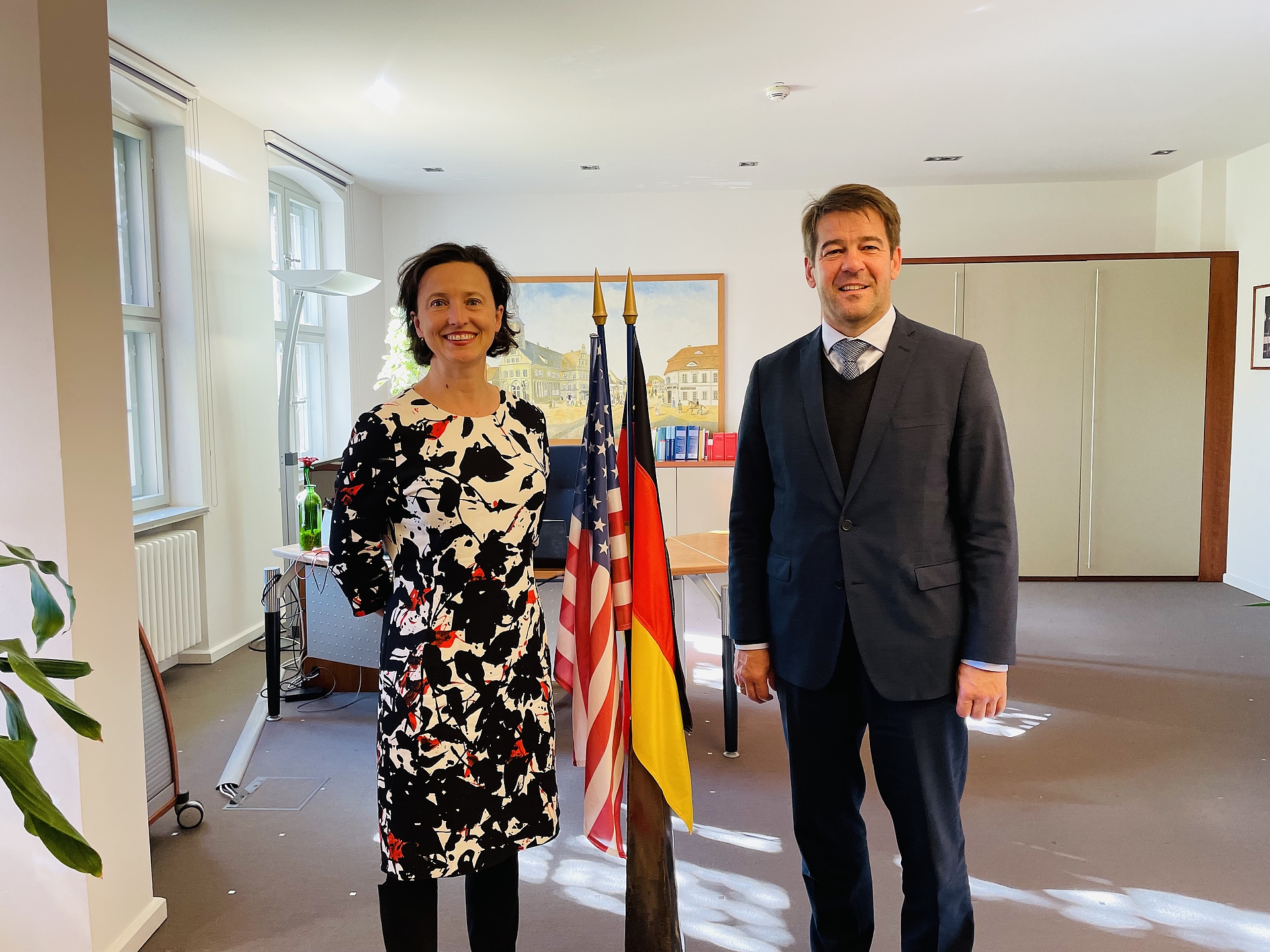 Oberbürgermeister Steffen Scheller begrüßte heute die US-Botschaftsrätin und Gesandte für Kultur, Frau Elizabeth Horst, in seinem Amtssitz am Altstädtischen Rathaus. Bei ihrem Gespräch ging es um den Kulturaustausch und um die deutsch-amerikanische Partnerschaft.