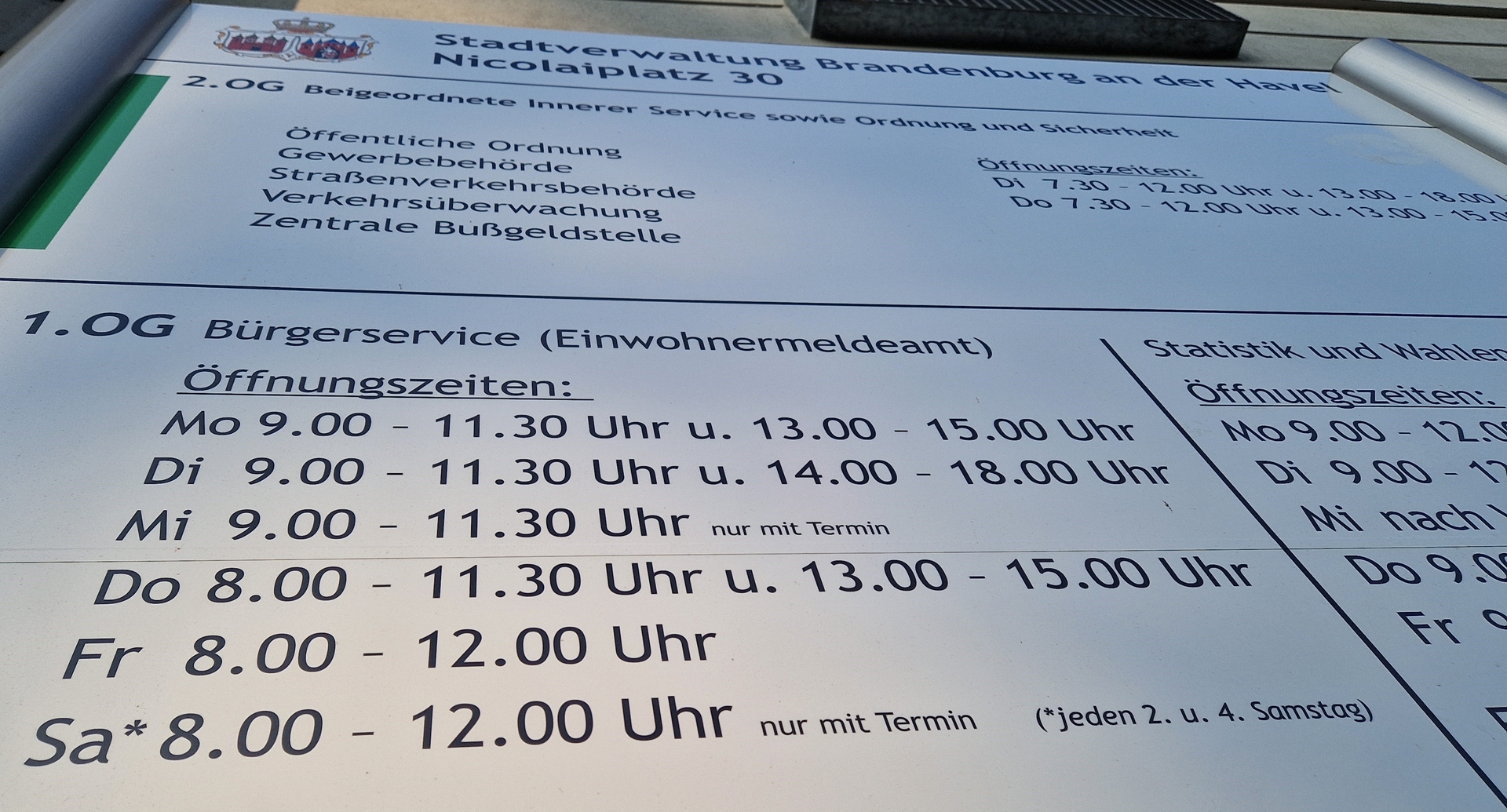 Die Ortsteilverwaltung Plaue/Kirchmöser schließt am 24. April 2025 bereits um 14:00 Uhr.