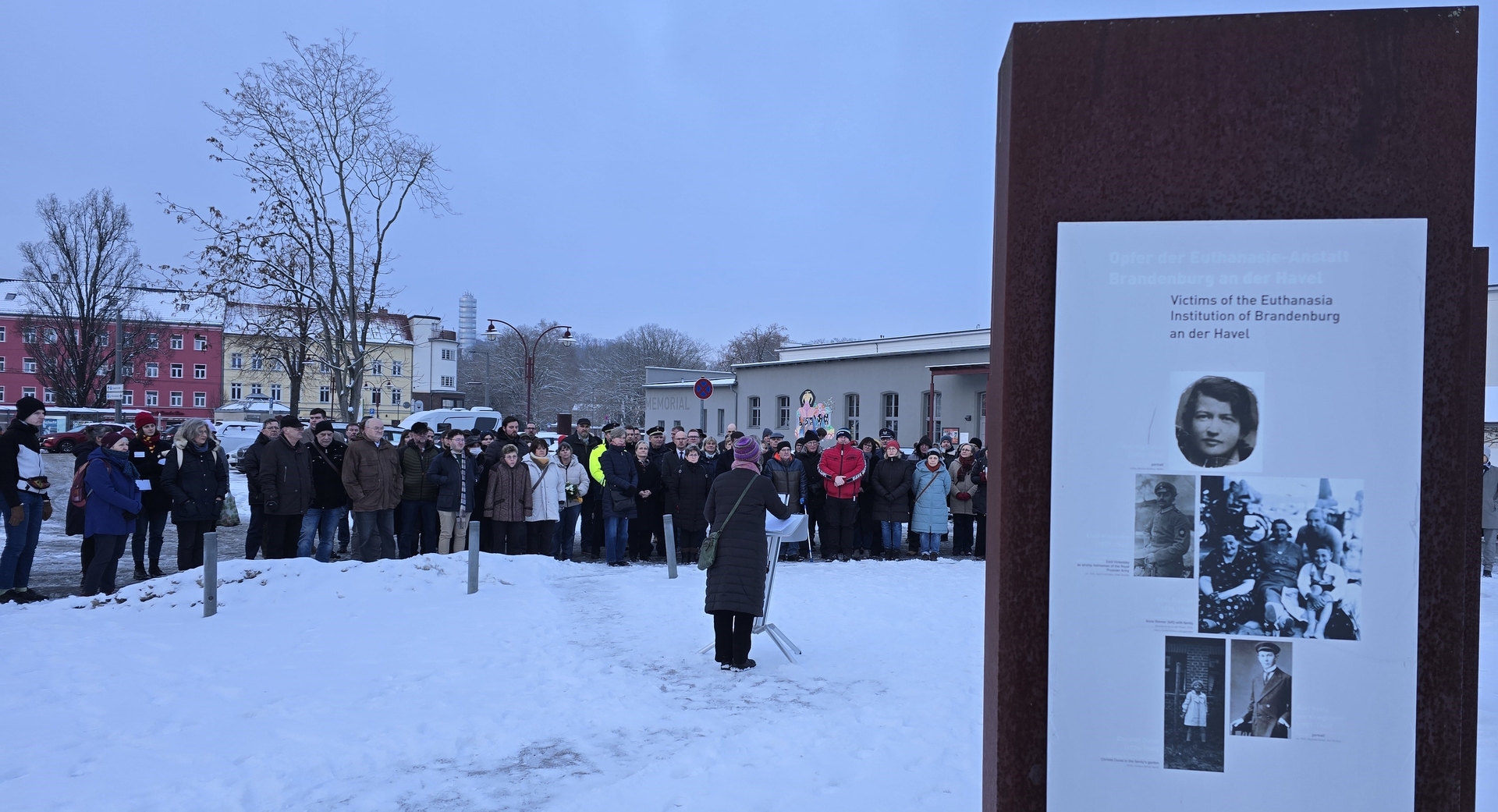 Die Gedenkveranstaltung fand auf dem Gelände der ehemaligen „Euthanasie“-Tötungsanstaltstalt auf dem Nicolaiplatz statt, wo sich zuvor – von August 1933 bis Januar 1934 – eines der ersten deutschen Konzentrationslager befand.
