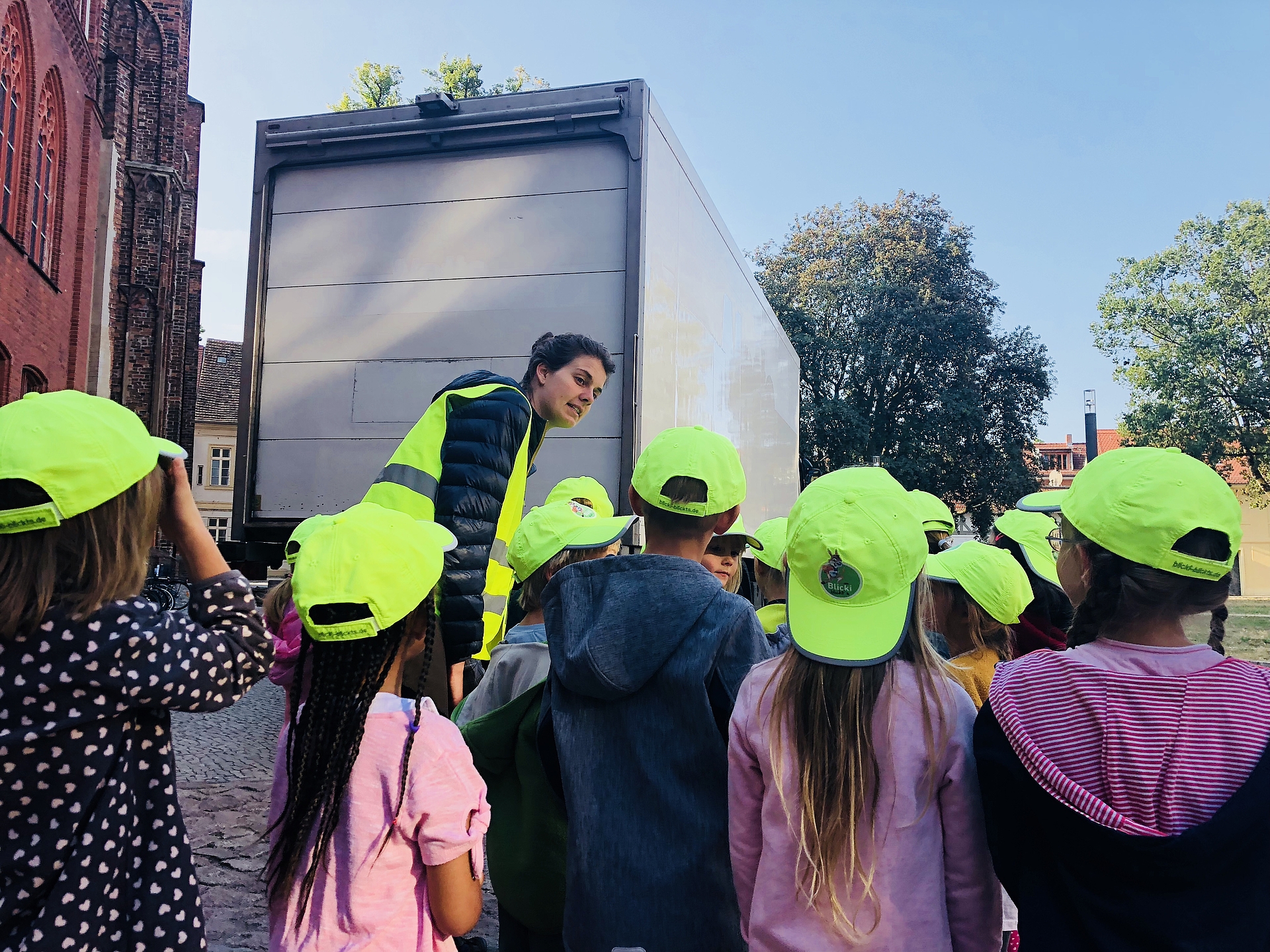 Bei der heutigen Verkehrsaktion des Blicki e.V. an der Domgrundschule sagt Oberbürgermeister Steffen Scheller: „Die Verkehrsaktionen des Blicki e.V. sind enorm wichtig, um Kinder auf Gefahren im Straßenverkehr aufmerksam zu machen. Das gilt ganz besonders für die vielen hundert Schulanfänger, die sich seit letzter Woche neu im Straßenverkehr orientieren. Die Aktion richtet sich aber nicht nur an die Kinder, sondern wir unterstützen damit auch die dringende Forderung nach Abbiege-Assistenten für LKW, mit denen schwere Unfälle verhindert werden können.“
