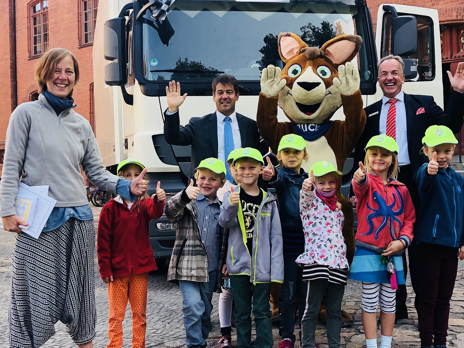 In dieser Woche besucht Blicki, das Känguru und Maskottchen der Verkehrssicherheitsinitiative des Blicki e.V., begleitet von einem LKW fünf Brandenburger Grundschulen, um den Kindern spielerisch und interaktiv den richtigen Umgang im Straßenverkehr zu vermitteln.