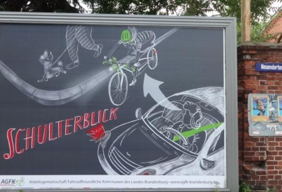 Die Stadt Brandenburg an der Havel beteiligt sich an der Verkehrssicherheitskampagne „Schulterblick“ und „Abstand halten“ der AGFK, um Verkehrsteilnehmende auf Unfallrisiken zwischen Radfahrenden und motorisierten Verkehrsteilnehmern, insbesondere auf die Wichtigkeit des Schulterblicks sowie der Einhaltung des ausreichenden Überholabstandes hinzuweisen.