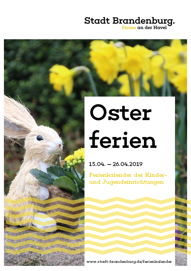 Wer wissen möchte was in der Zeit vom 15. bis zum 26.04.2019 im café contact, in der Galerie „Sonnensegel“ e. V., im Freizeitzentrum „KiS“, in der Stadtteilbibliothek Hohenstücken, im Naturschutzzentrum Krugpark, in der Kinderbibliothek am Altstädtischen Markt 8, in der Station Junger Techniker und Naturforscher, im Marienbad, im Wichernhaus, im Kinder- und Jugendfreizeitclub „KiJu“ und im Mehrgenerationenhaus „Die Stube“ los ist, findet die tollen Angebote auf der Internetseite https://www.stadt-brandenburg.de/ferienkalender.