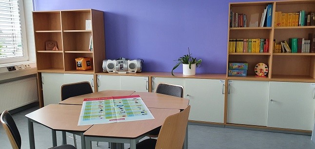 Der neue Standort besteht aus fünf Kursräumen, den Mitarbeiter-Büros und einem Empfangs-Bereich mit Info-Point. Die Farben der Wände lassen erkennen, welche Lehrbereiche bzw. welche Kurse in den fünf Kurs-Räumen stattfinden werden: Rot für Kunst, Kultur & Kreatives Gestalten, Orange für Mensch & Gesellschaft, Gelb für Grundbildung, Blau für Arbeit, Beruf & EDV sowie Lila für Sprachen. Der große Mehrzweckraum für den Bereich Kunst, Kultur und kreative Gestalten lässt sich auch für Kommunikations-Kurse oder Diskussionsrunden umgestalten. Auch der IT-Schulungsraum ist nicht allein den Computerkursen vorbehalten – er steht auch für Kurse aus den Bereichen Sprache, Grundbildung, Arbeit und Beruf oder Online-/Hybrid-Kursen zur Verfügung.
