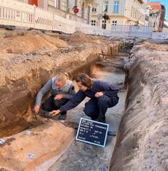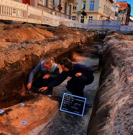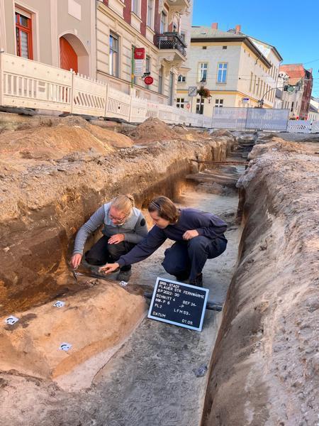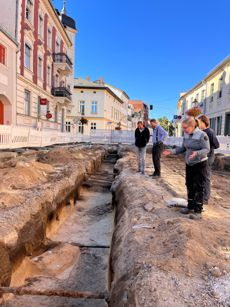 Die Trasse folgt der letzten freien Strecke in der Mitte des Straßenraums und trifft dort eine bis dahin ungestörte archäologische Befundlage, die derzeit in den ersten vierzig Metern untersucht wird.
