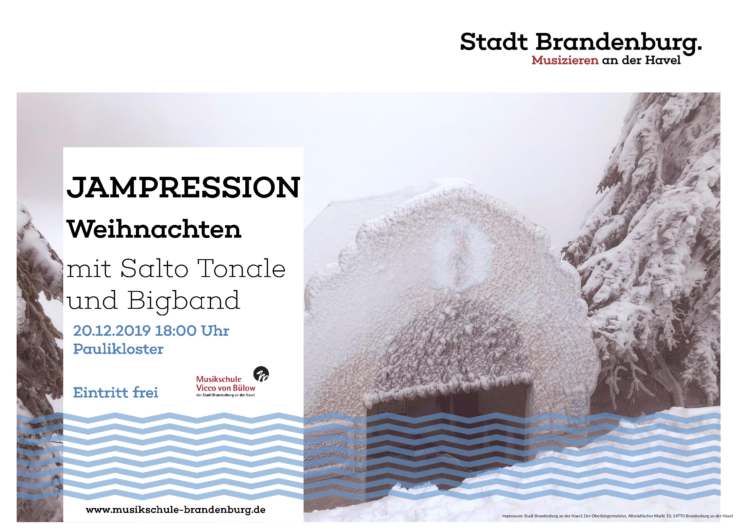 So hat der Jazzchor „JAMpression“ den Chor „Salto tonale“ und die Bigband der Musikschule „Vicco von Bülow“ eingeladen, mit ihnen gemeinsam die Brandenburgerinnen und ihre Gäste in einem kleinen Konzert auf die kommende Weihnacht einzustimmen.