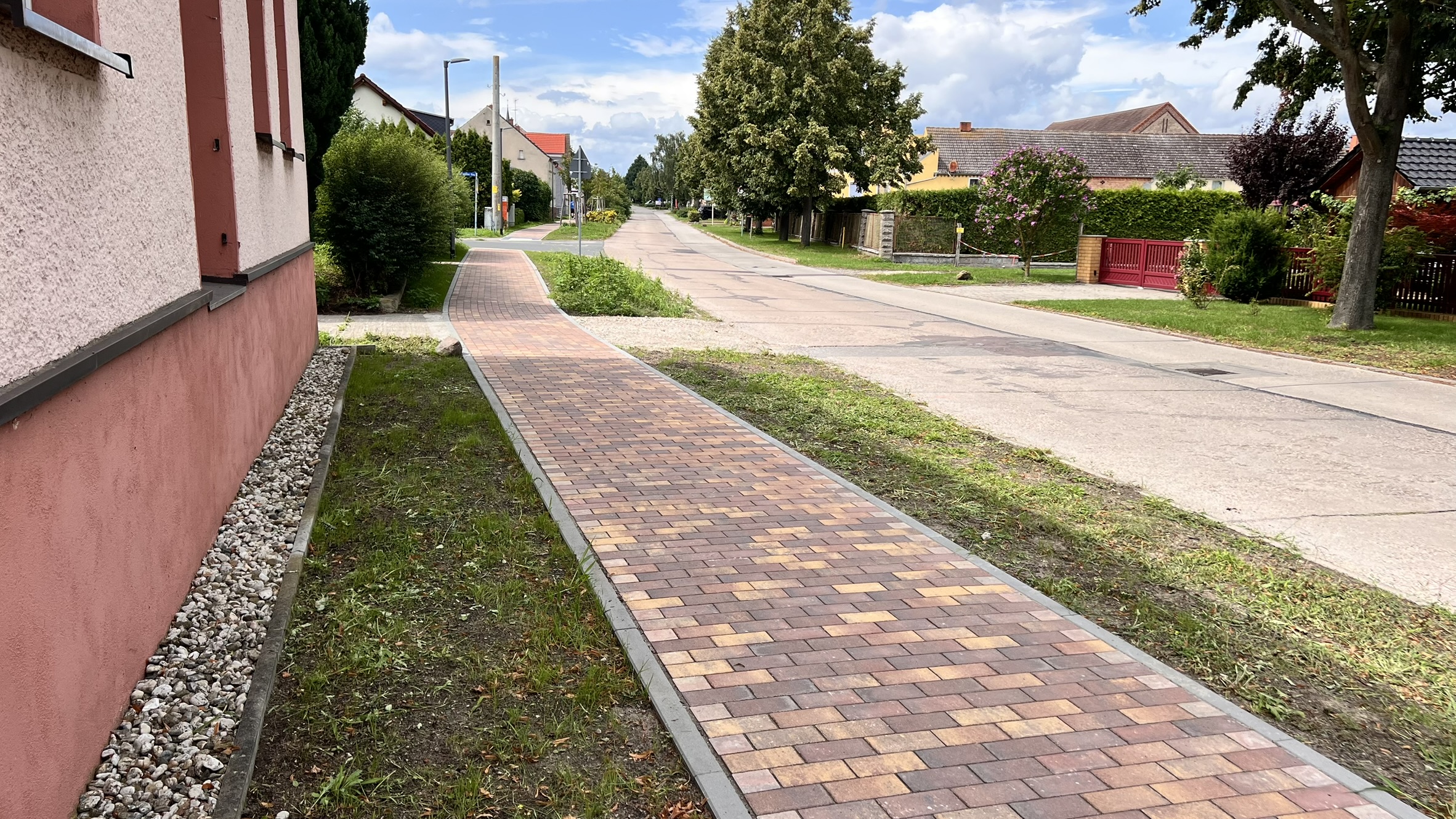 Die Gehwegsanierung in der Straße Altes Dorf im Ortsteil Schmerzke wurde einen Monat früher als ursprünglich vorgesehen abgeschlossen. Der Abnahmetermin der Gesamtmaßnahme erfolgte kürzlich.