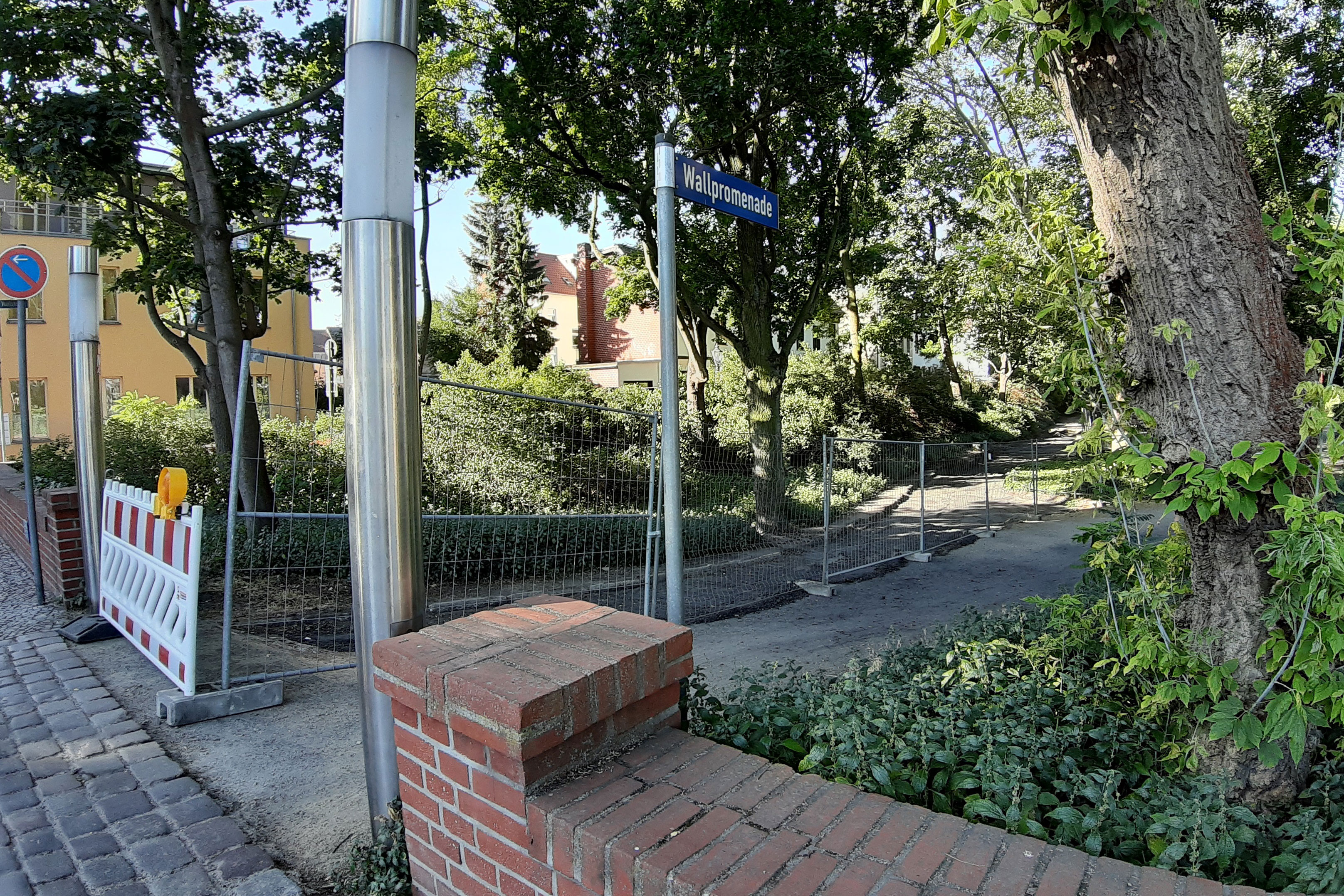 Auf Grund des hohen Verschleißes der wassergebundenen Wegedecke des südlichen Weges der Wallpromenade ist deren Erneuerung notwendig. Darüber hinaus werden die Rampen zur Wallstraße und zum mittleren Weg aufgearbeitet. Daher ist ab sofort nur der nördliche Weg, parallel der Bergstraße, nutzbar. Der Weg parallel der Wallstraße sowie die Rampen zum mittleren Weg sind gesperrt.