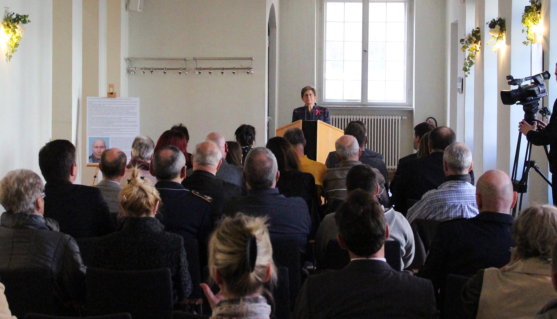 „Ausstellungen wie diese hier sind sehr wichtig. Wichtig für die Betroffenen, die auf diese Weise auf das erlittene Unrecht aufmerksam machen und an das ihnen zugefügte Leid erinnern. Und wichtig auch für uns, denen die Gelegenheit gegeben wird, sich diesem wichtigen und manchmal sehr kontrovers diskutierten Thema aus einem Blickwinkel zu nähern, der sonst nicht möglich wäre“, sagt Oberbürgermeisterin Dr. Dietlind Tiemann zur Eröffnung der Wanderausstellung „Vergangenheit bewältigen“ im Altstädtischen Rathaus.