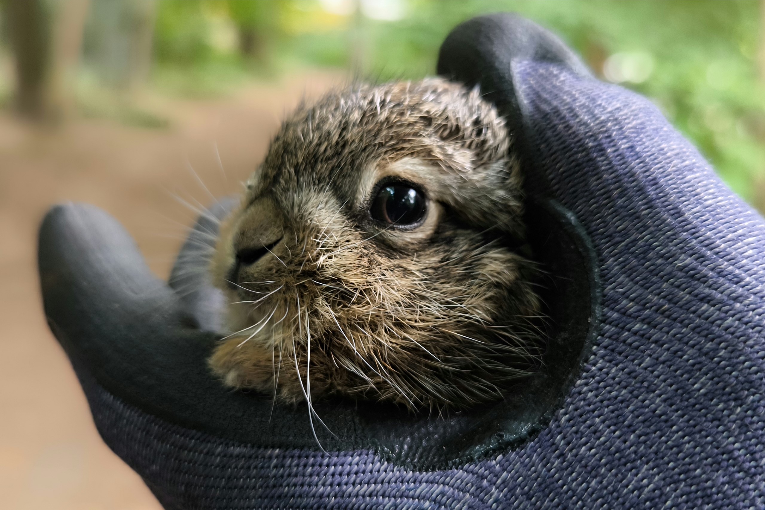 Gleiches gilt, wenn auf einem Feld ein Feldhasenbaby gefunden wird. Der Junghase ist durch seine Färbung gut getarnt und gibt in den ersten Lebenstagen keine Witterung ab. Die Jungtiere werden zum Schutz vor Fressfeinden von den Eltern abgelegt. Dort harren sie in typischer Hasenmanier mit angelegten Löffeln reglos aus. Die Häsin sucht ihren Nachwuchs nur zwei- bis dreimal täglich zum Säugen auf. Gleiches gilt auch für Rehe. Der Nachwuchs ist zu dessen Schutz die meiste Zeit des Tages allein. Wird das „Bambi“ angefasst, ist es meist dem Tod durch Verhungern oder Schwächung ausgeliefert.
