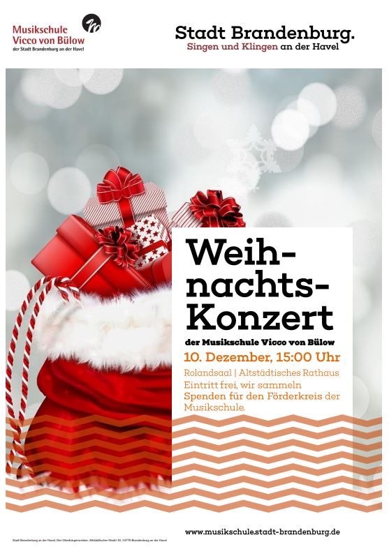 Am Sonntag, dem 10. Dezember 2023 um 15:00 Uhr wird es festlich im Rolandsaal. Die Schülerinnen und Schüler der städtischen Musikschule haben, gemeinsam mit ihren Lehrerinnen und Lehrern, ein abwechslungsreiches Programm vorbereitet.