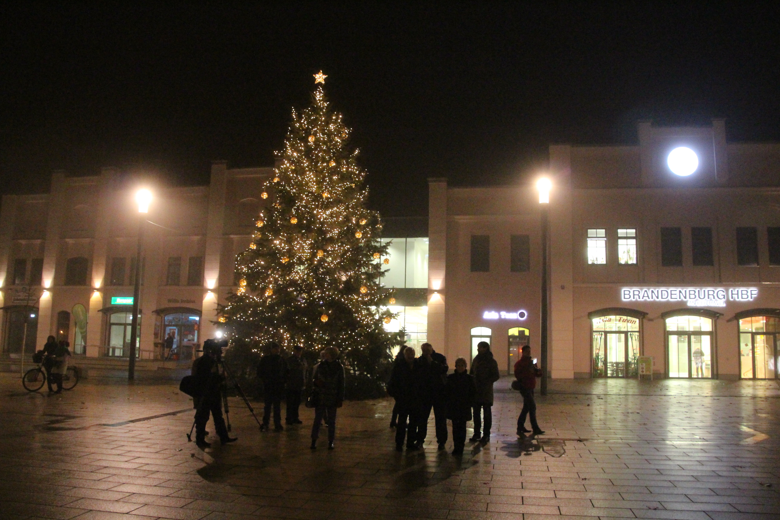 Gestern Abend, 25.11.2014, schalteten Oberbürgermeisterin Dr. Dietlind Tiemann und WOBRA-Geschäftsführer Klaus Deschner die ca. 7.000 Lichter der Colorado-Tanne vor dem Brandenburger Hauptbahnhof an.