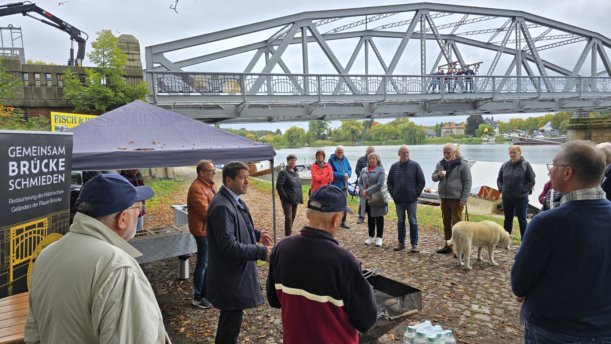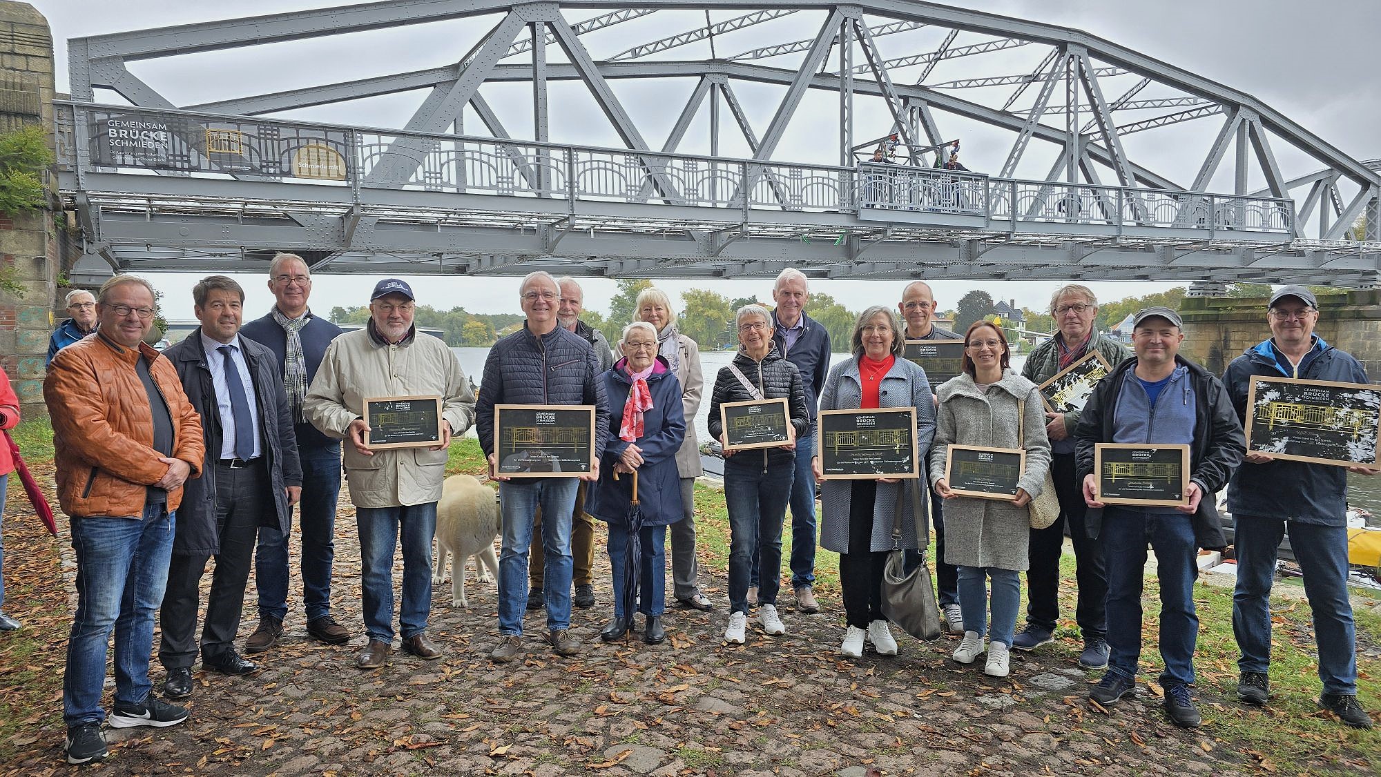 Was im 120. Bestehensjahr der Plauer Brücke seinen Anfang nahm, hat im Oktober 2025 für eine stattliche Erweiterung gesorgt. Den ersten vier restaurierten Teilen des schmucken Jugendstil-Geländers konnten weitere sieben zur Seite gestellt werden. Das wurde mit einem kleinen Montage- und Auszeichnungsfest am Bornufer gefeiert, wozu der Unabhängige Bürgerverein Plaue e. V. einschließlich Ortsvorsteher Udo Geiseler eingeladen hatte. Ihr Anliegen: