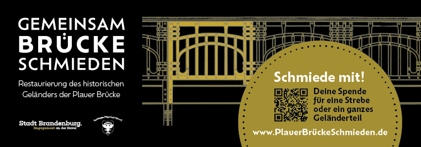 Zu den größten Brücken-Förderern zählt weiterhin Familie Windeck, die sich die Rettung des Geländers auf die Firmen-Fahnen geschrieben hat und ihre Lehrlinge mit den alten Handwerkstechniken vertraut, um das geschmiedete Geländer Stück für Stück aufzuarbeiten. 60 Teile müssen es am Ende für die 130 Meter lange Brücke sein, wofür sich noch viele Sponsoren zu dem Kreis der Unterstützenden gesellen müssen. Alle Informationen dazu sind auf der Informationsseite zum Brandenburger Ortsteil Plaue an der Havel zu finden.